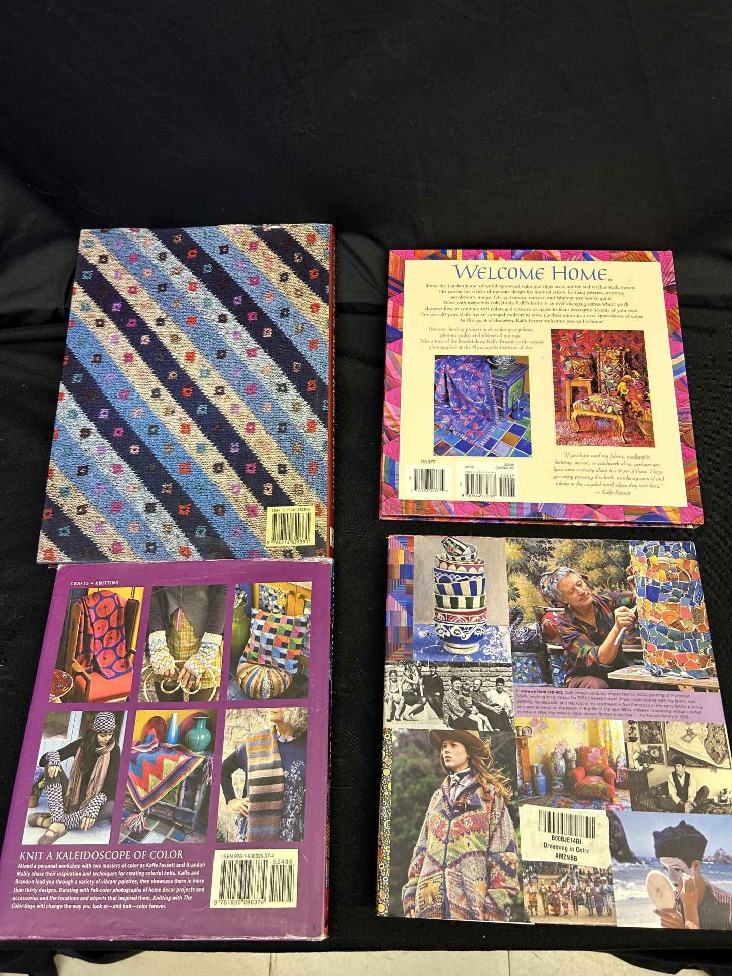 4 Books by Kaffe Fassett. Knitting as well as autobiography. Beautiful books.