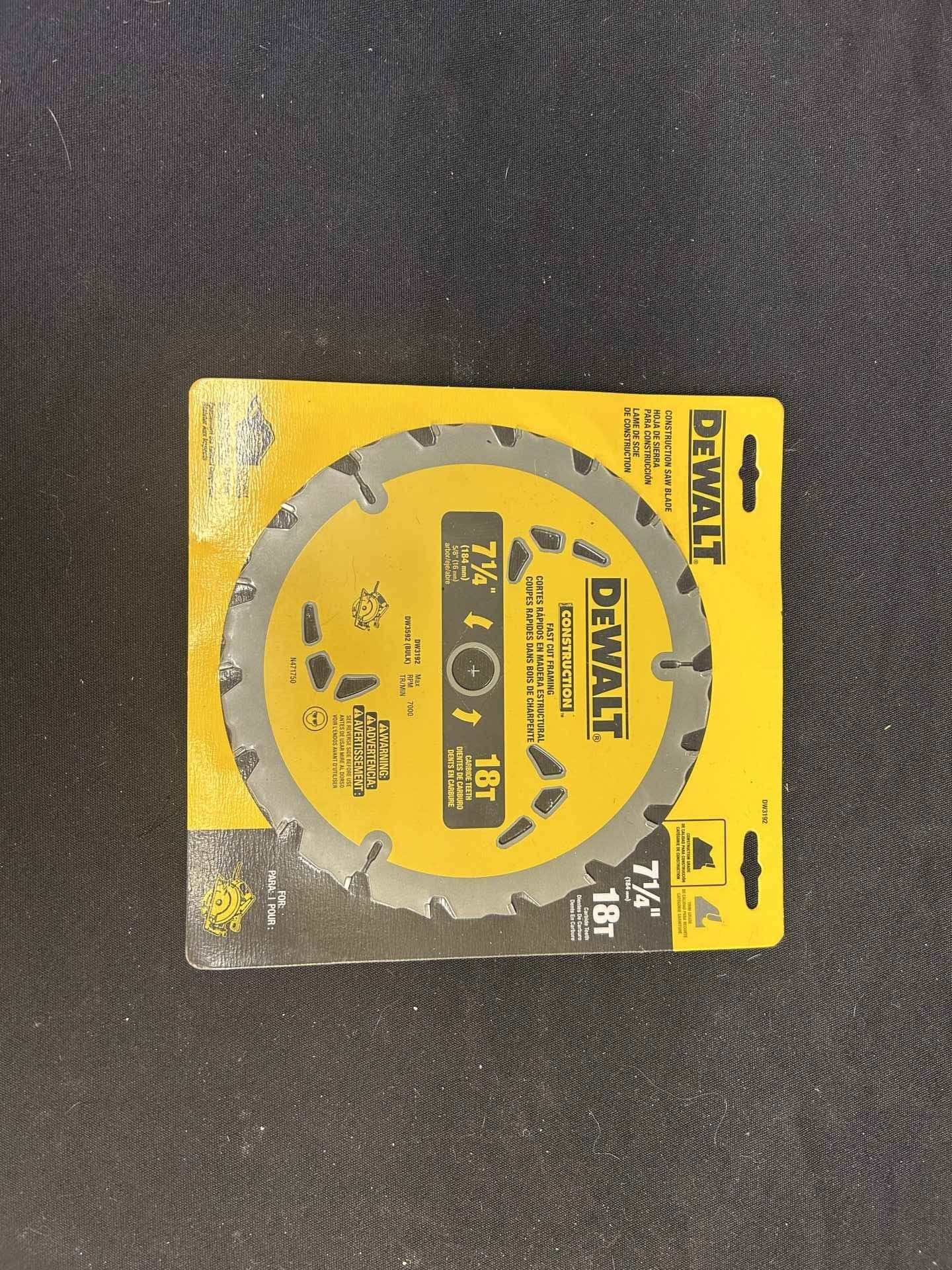 DeWalt Construction Saw Blade. 7-1/4″. Fast cut framing. 18T carbide teeth. Brand new.