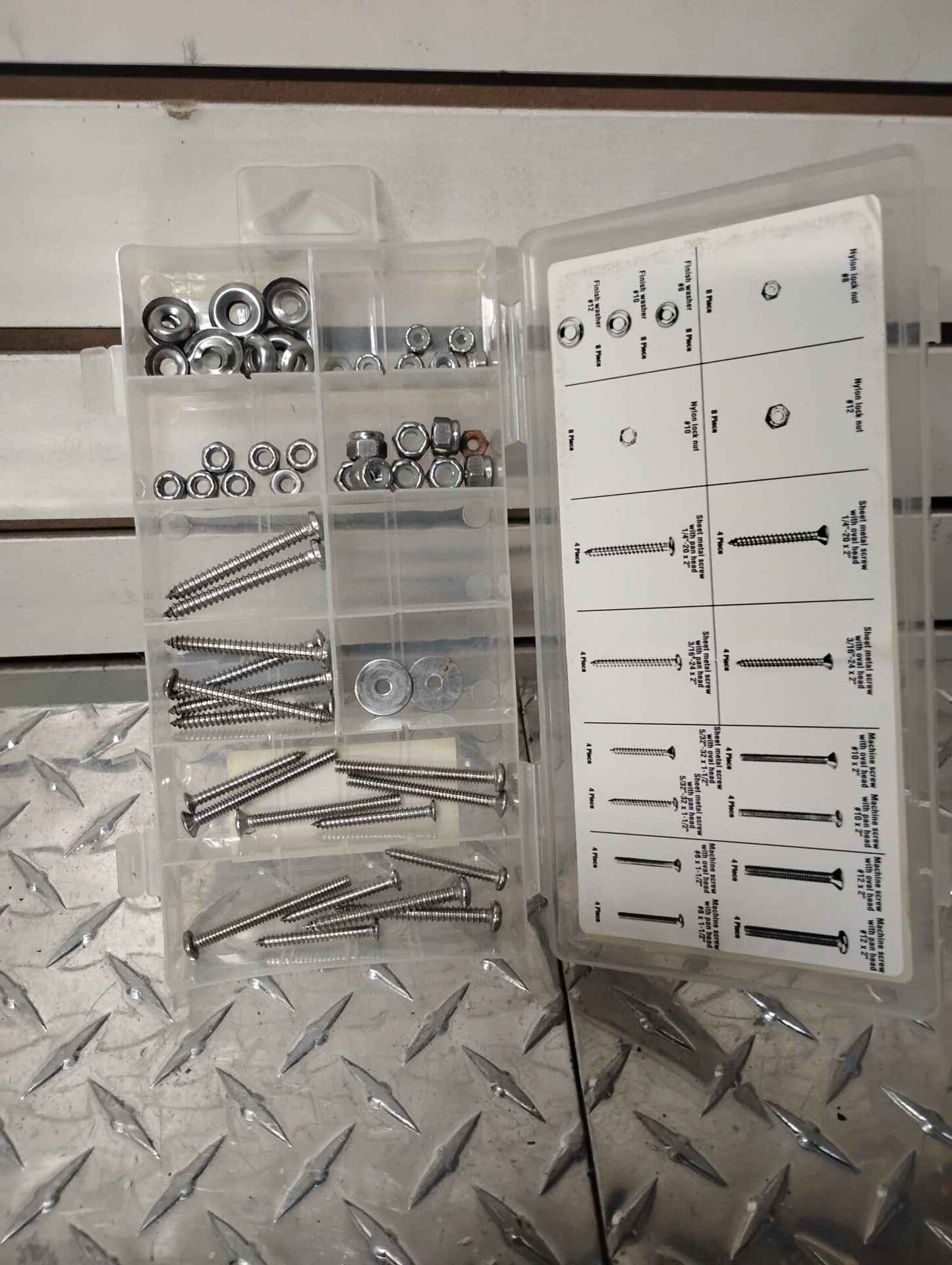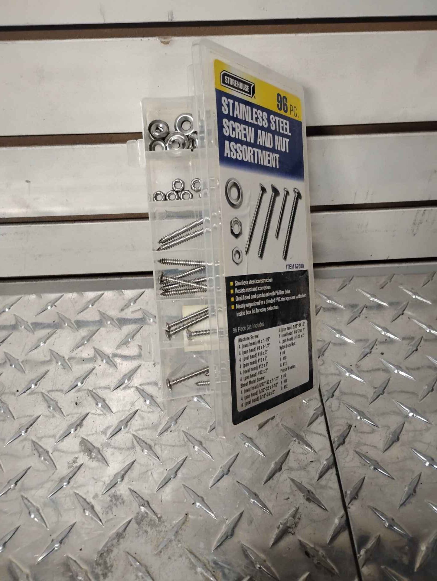 96 piece stainless screw and nut assortment….will not be the amount of pieces stated