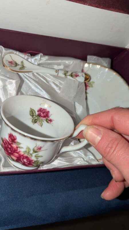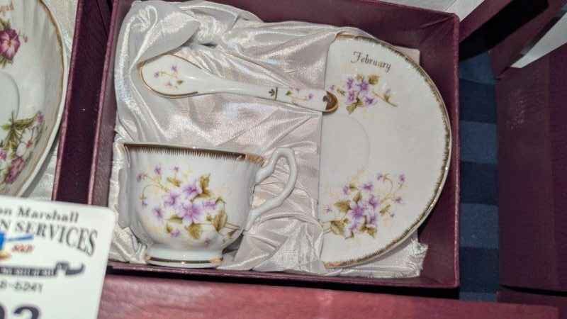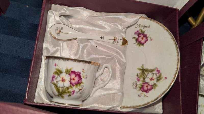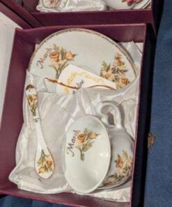 Adeline Porcelain Birthday Tea cup/saucer & spoon boxed sets