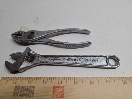 A5 Adjustable wrench and slip joint pliers, used