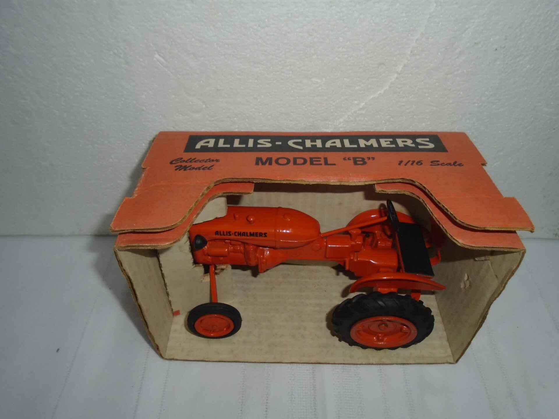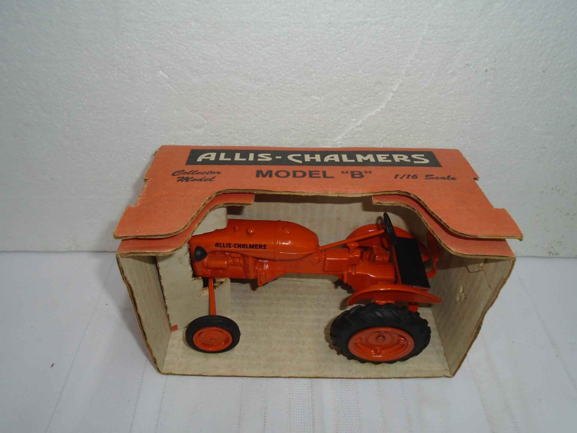 Allis Chalmers B 1/16 scale Toy Tractor Times 1987 (Front axle bent)