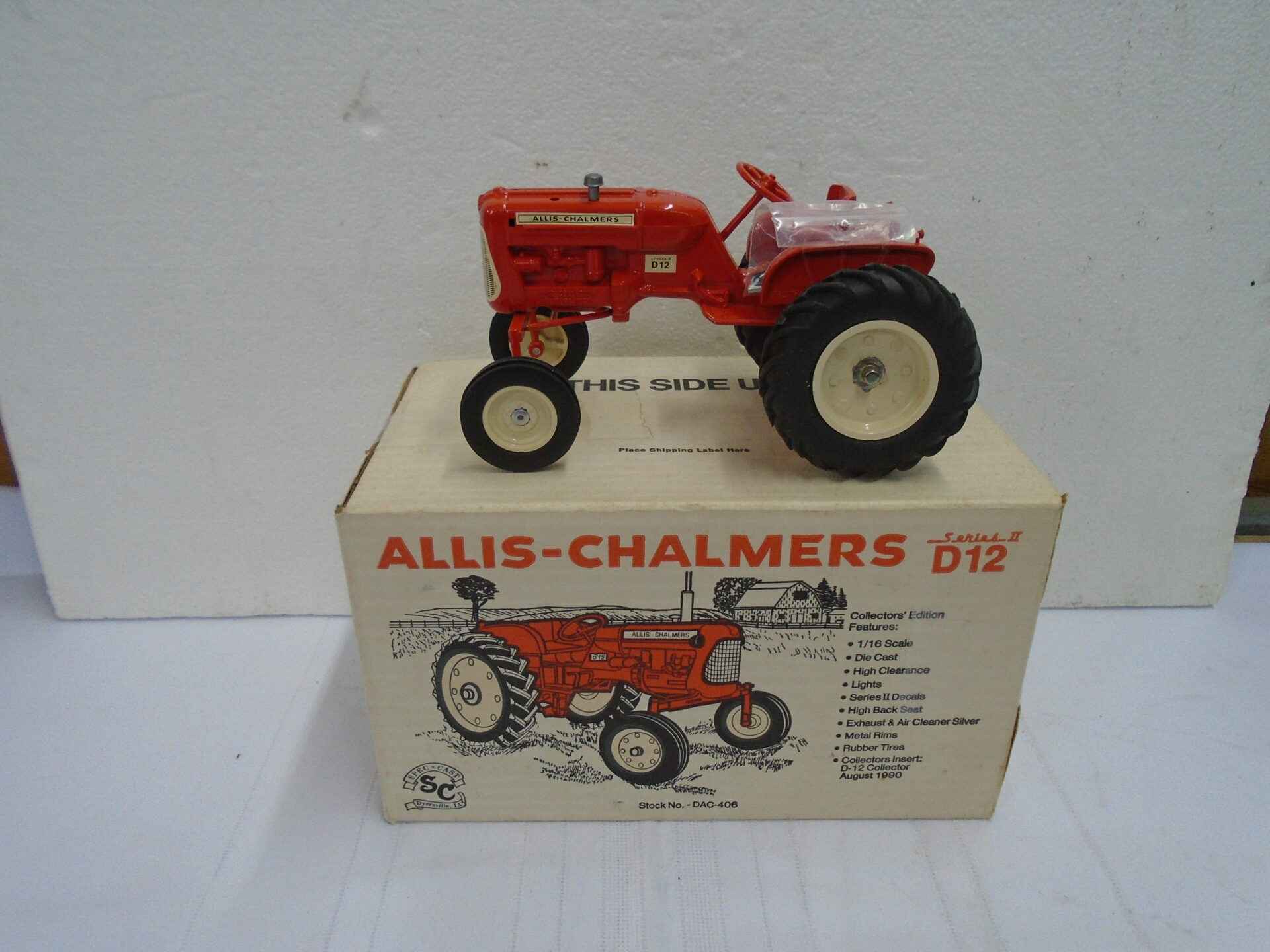 Allis Chalmers D12 Series 2 1/16 scale Collector’s Edition 1990 ( Muffler & lights taped to tractor)