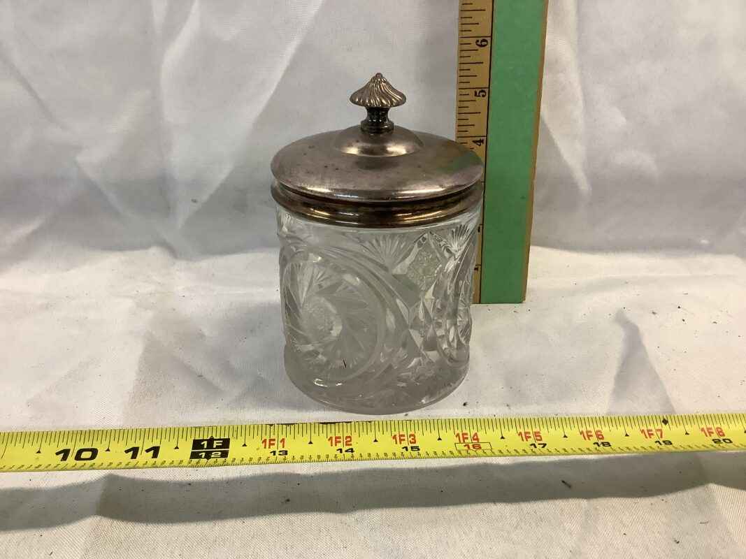 Antique Cut Glass Humidor with Silver-plated(?) Lid