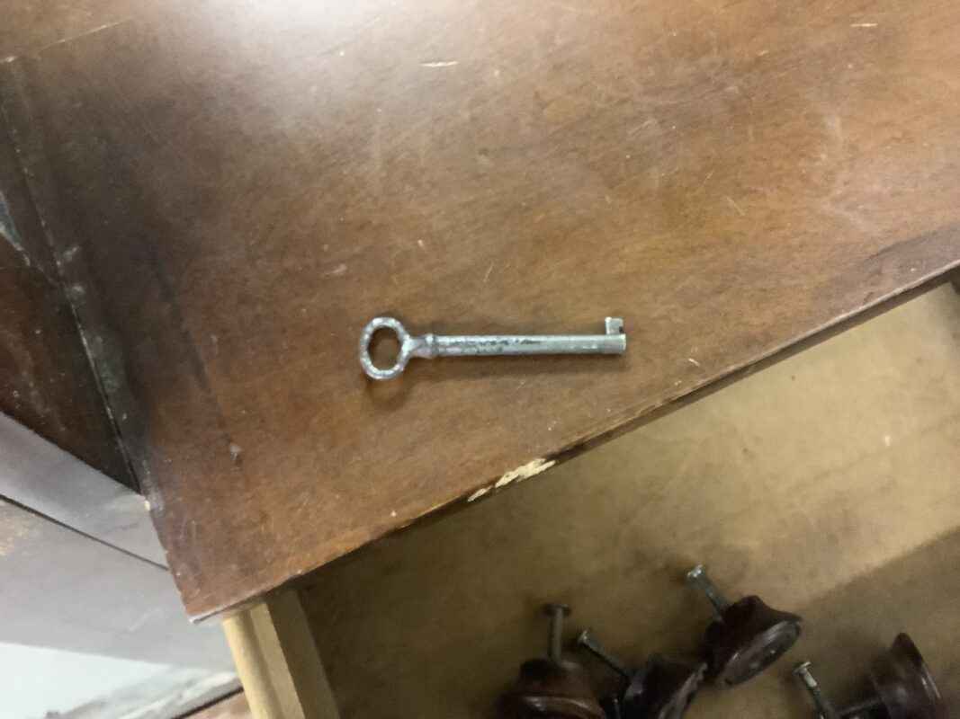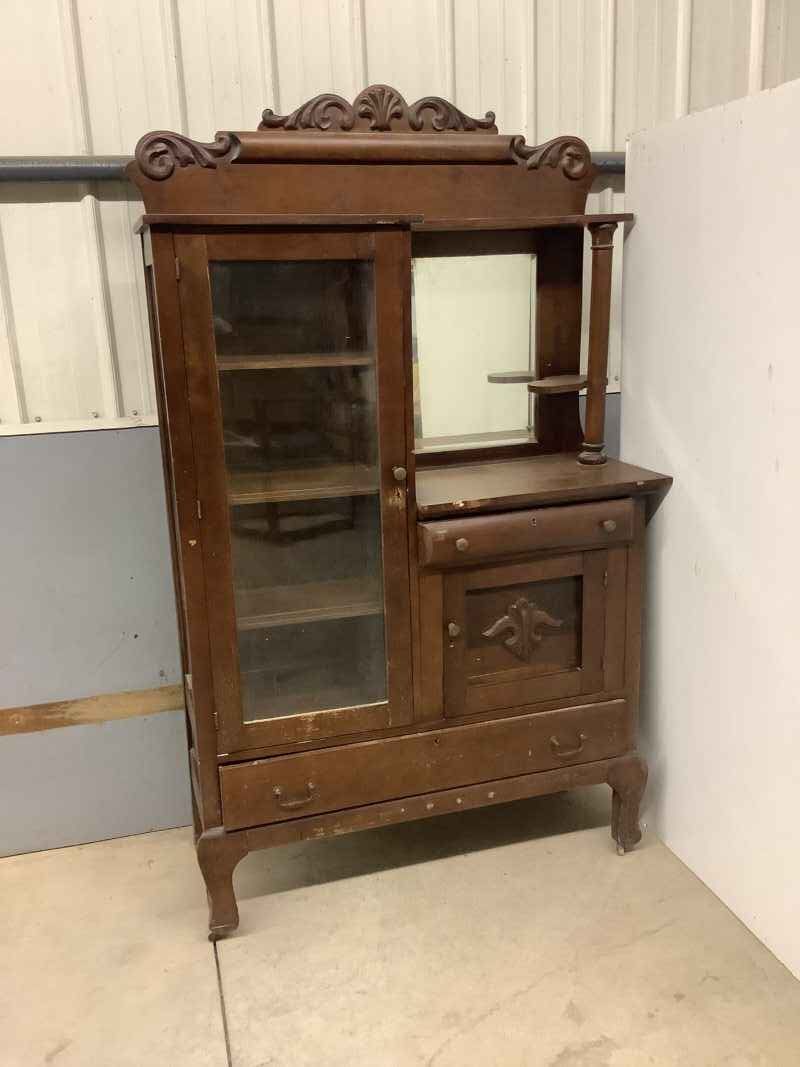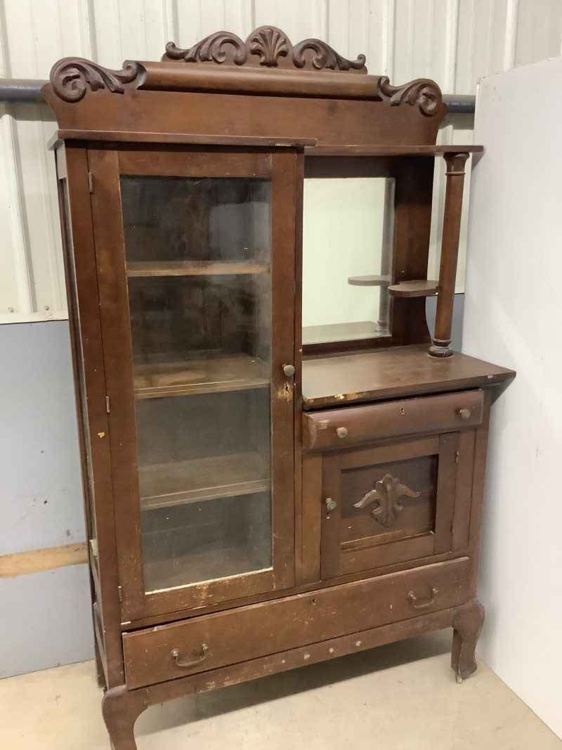 Antique Side-by-Side Cabinet with key on casters