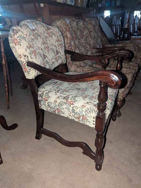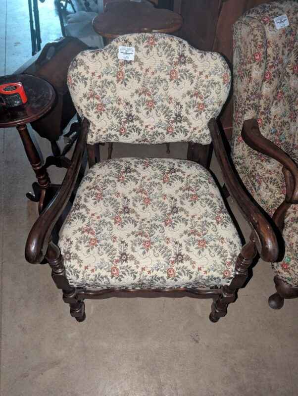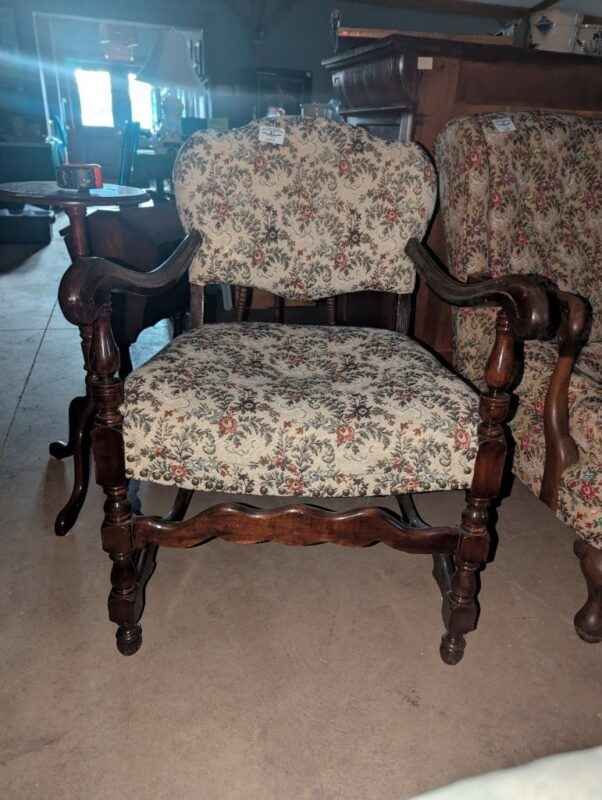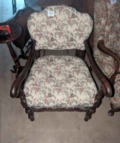 Antique Wooden Arm chair with floral uphostery