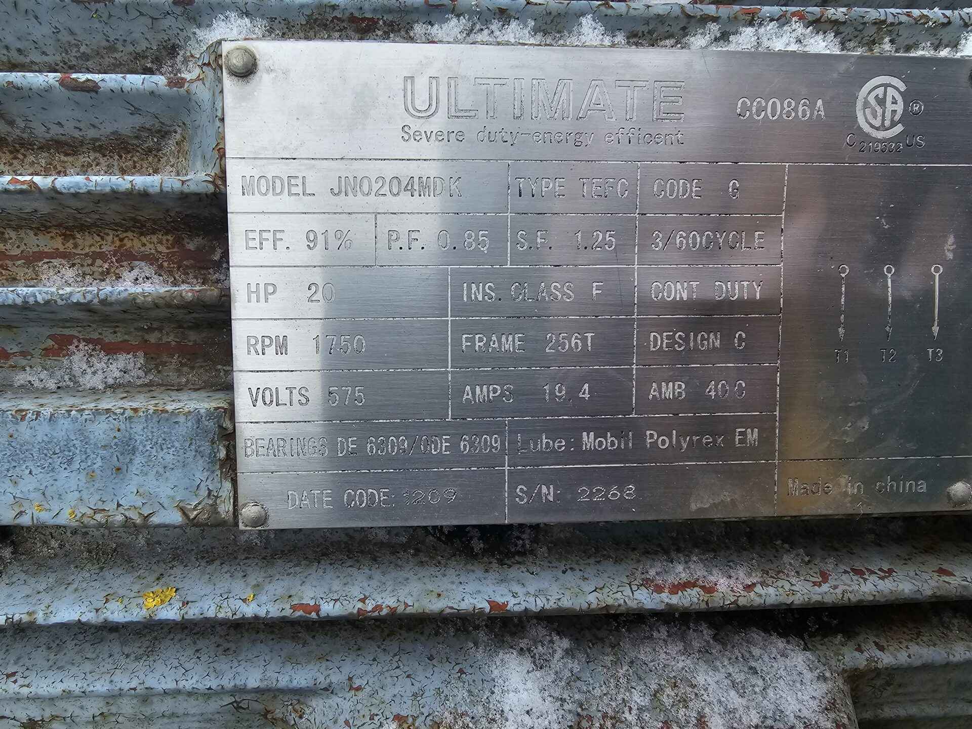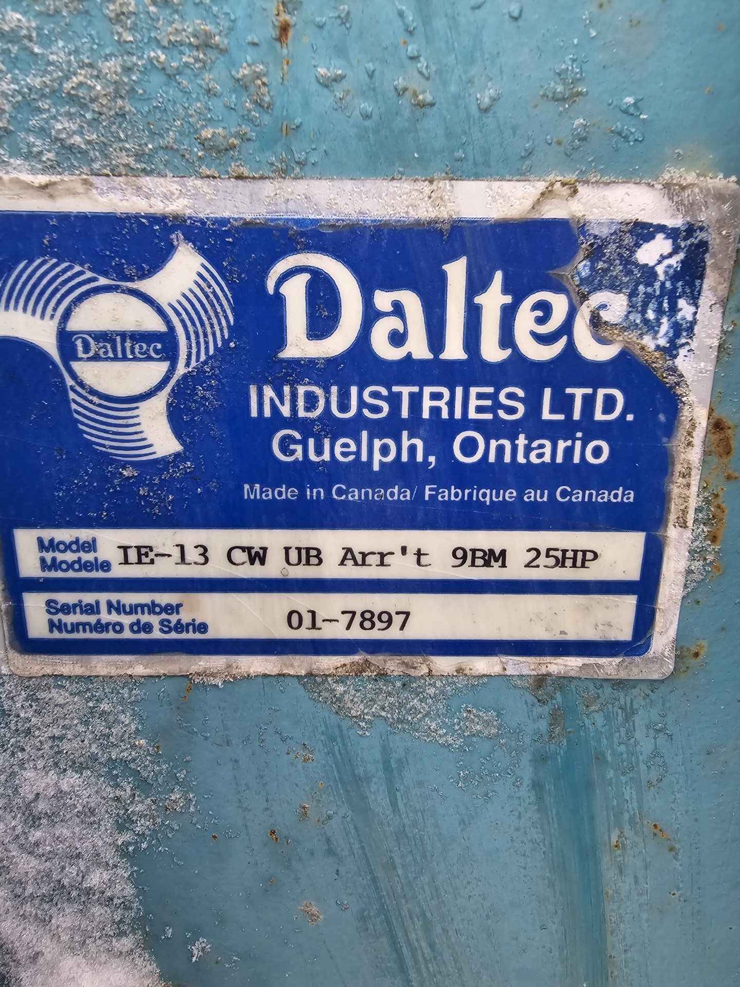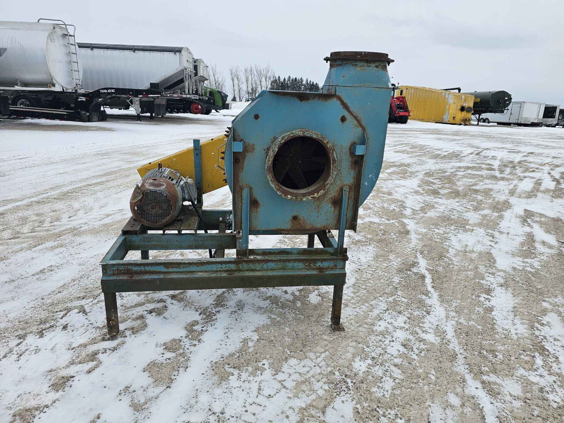 Dust collector fan, was used for aspirating red dog and fines off corn dryer and blowing into building. Has 20 hp 3 phase electric motor, motor fan cover has dent but motor undamaged. Fan housing and impeller in good shape.