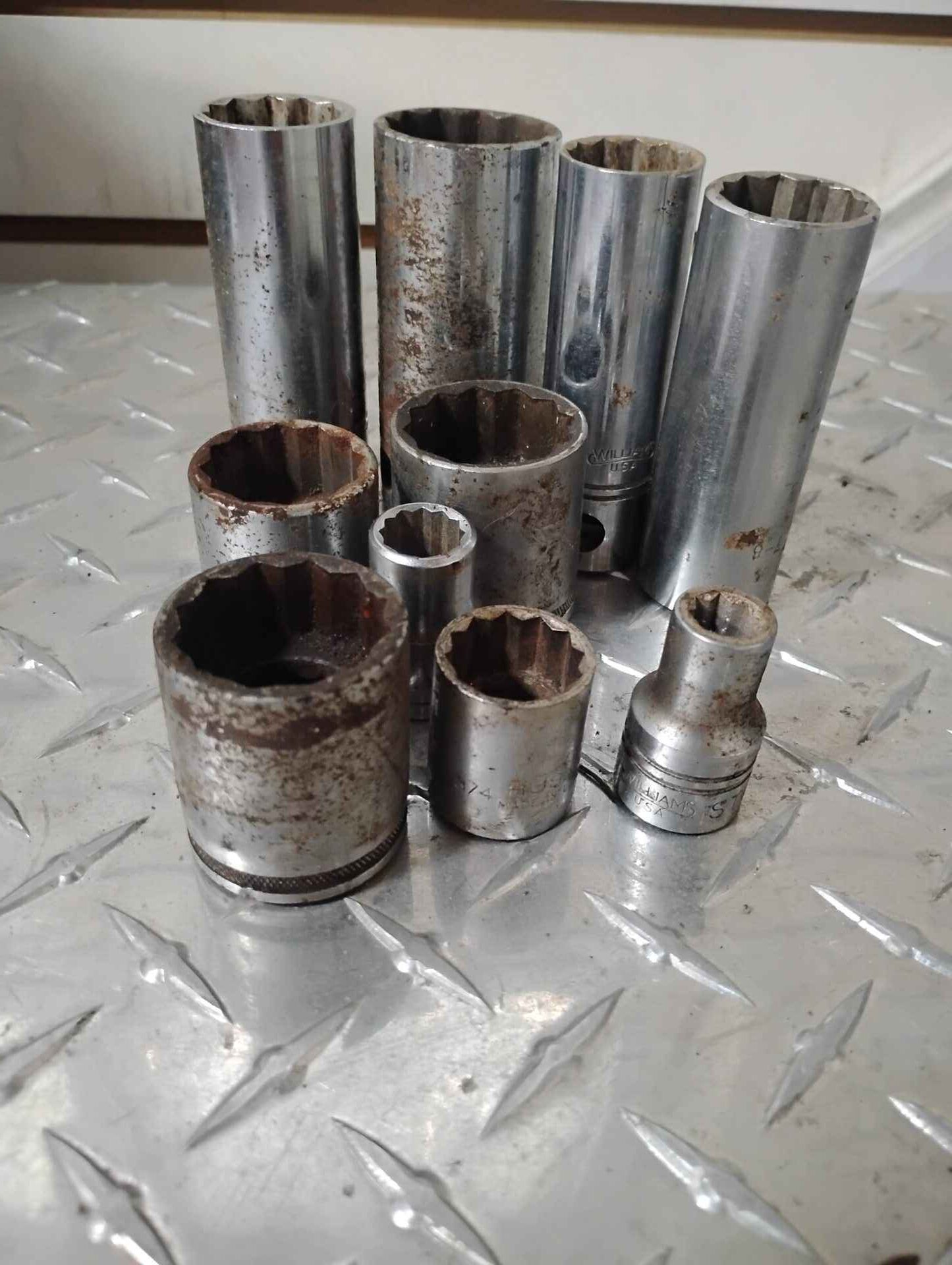 Assorted 12 point (Williams by snap-on) shallow and deep sockets