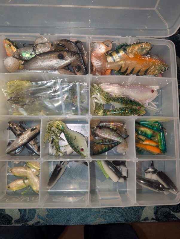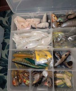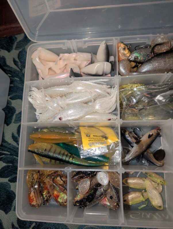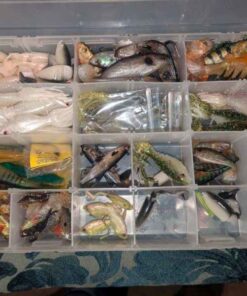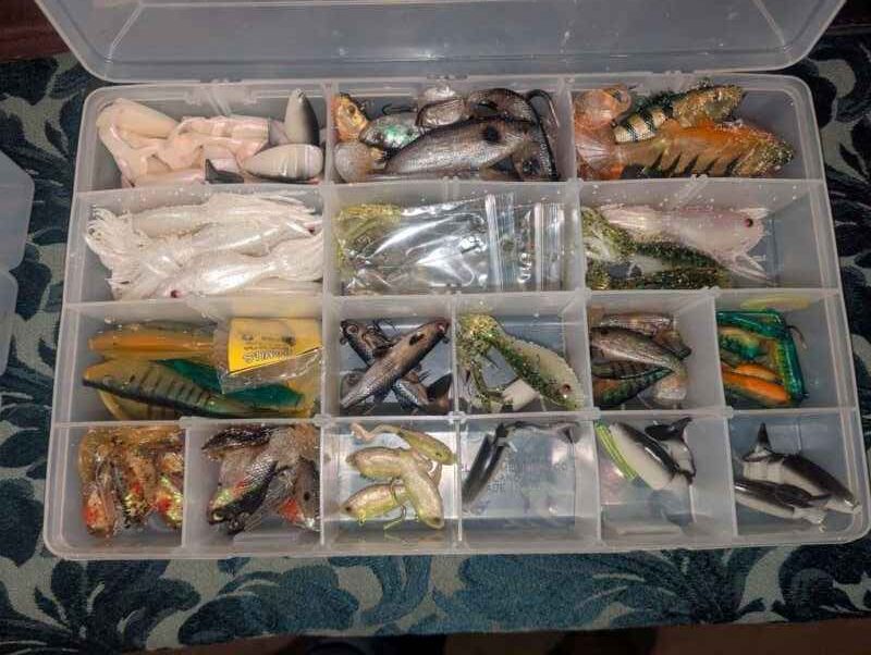 Assorted bait/tackle in plastic organizer
