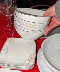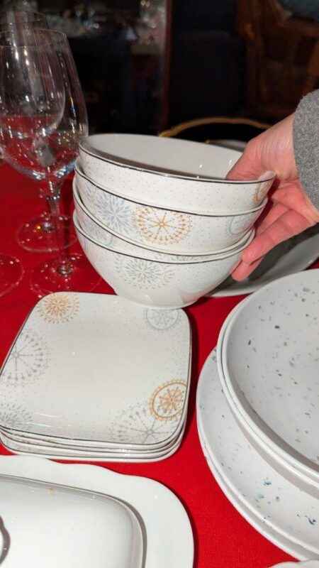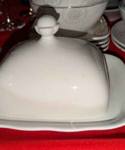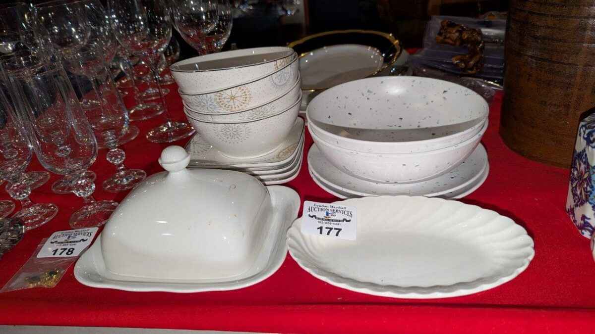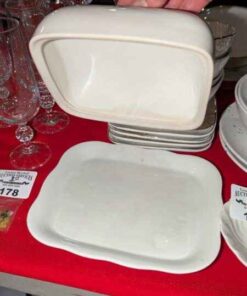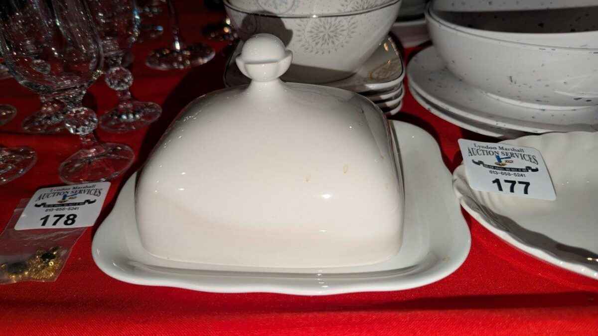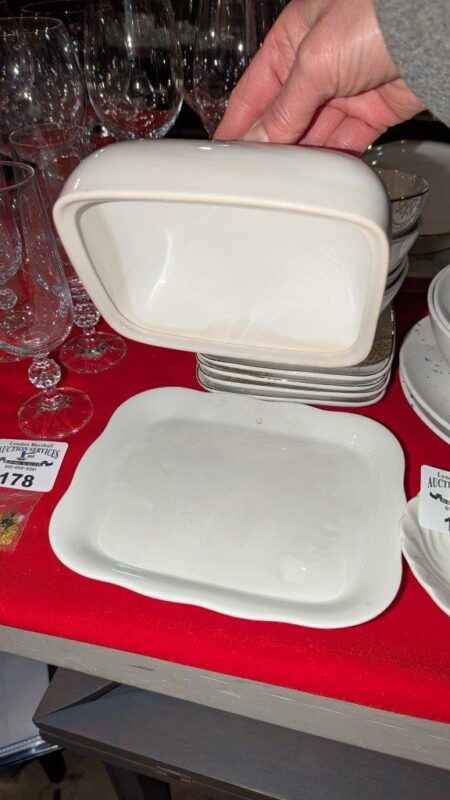 Assorted dishes, covered cheese plate, etc