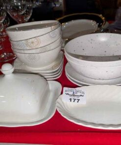 Assorted dishes, covered cheese plate, etc