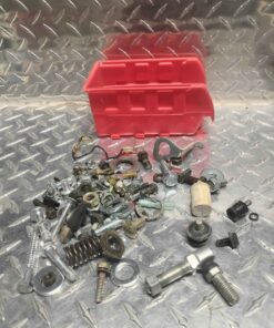 Assorted hardware with red parts bin