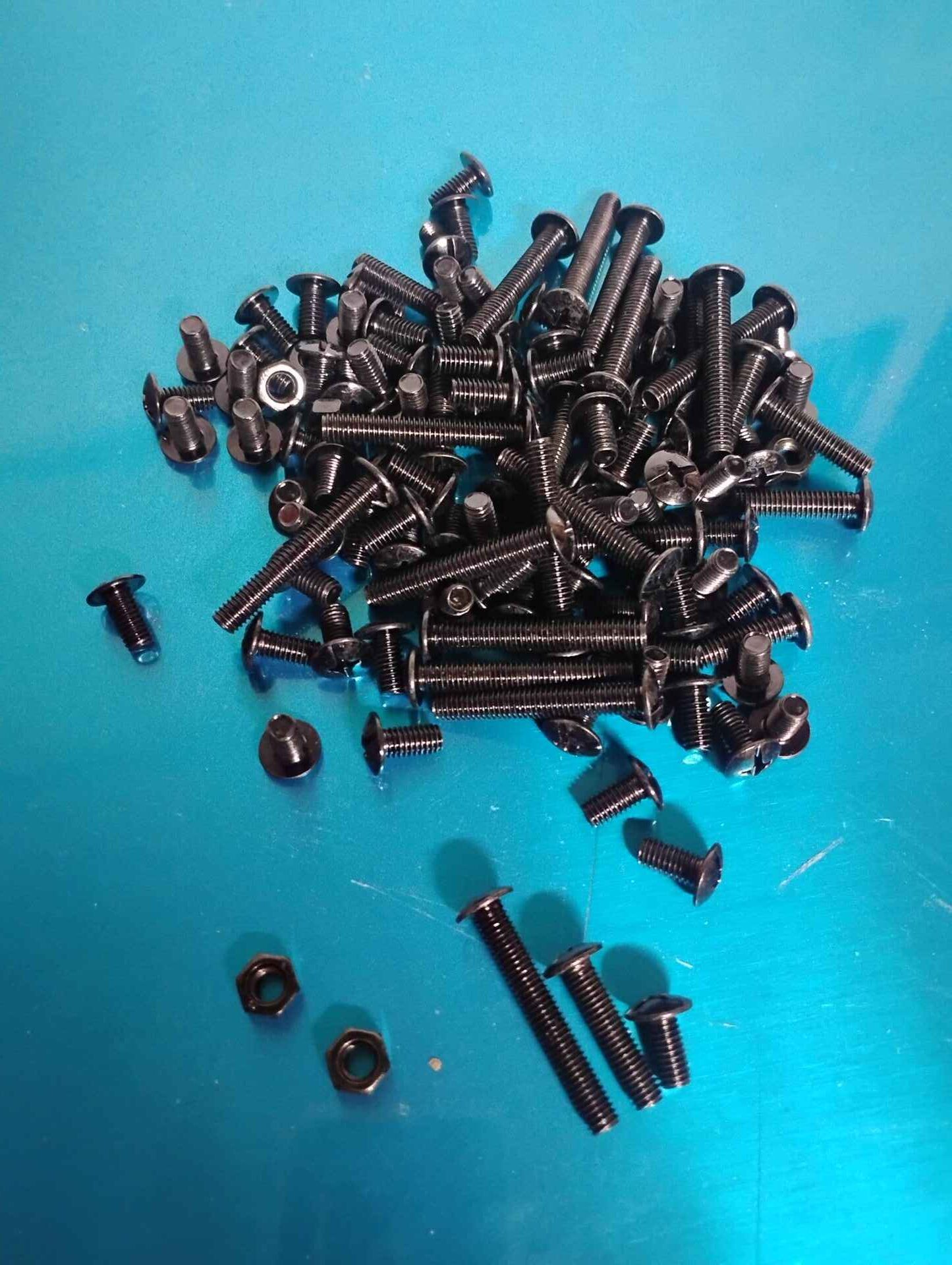 Assorted lengths proximately 1/4 in black bolts and nuts