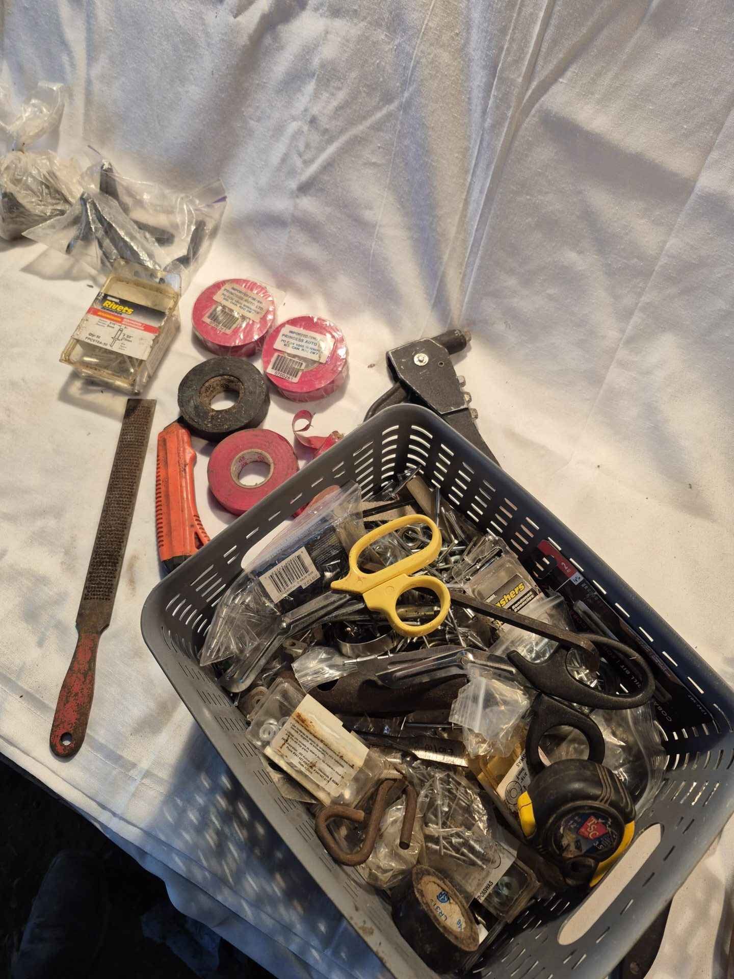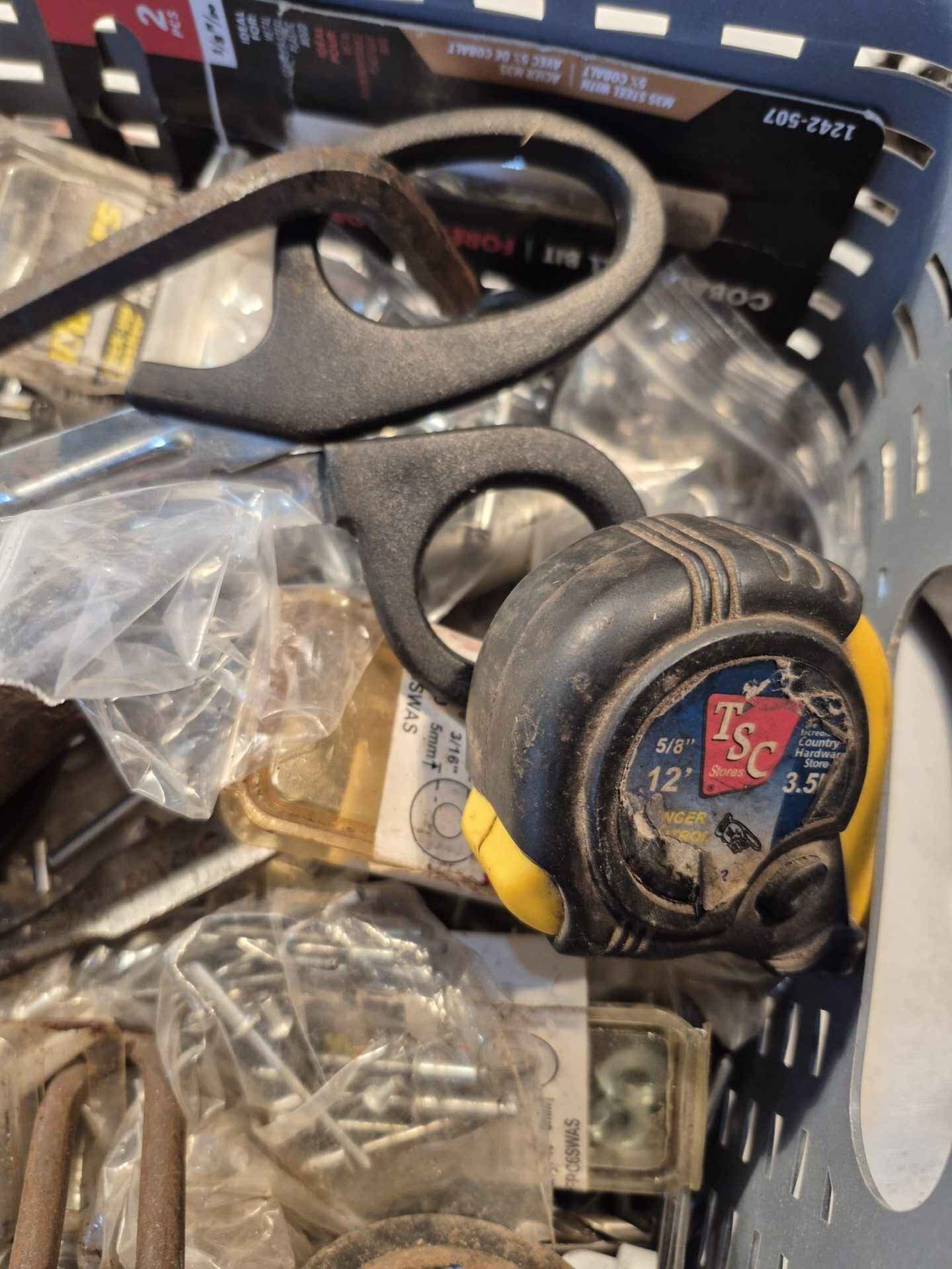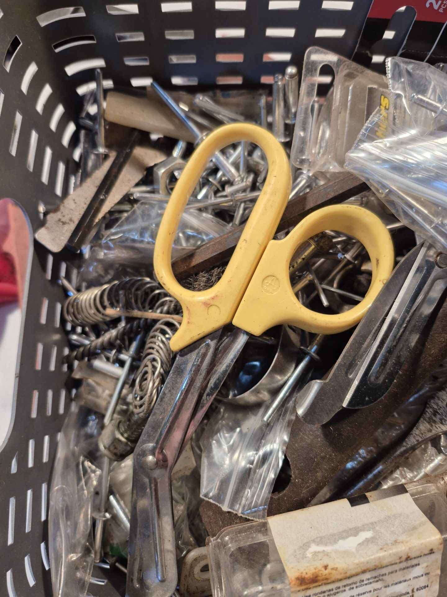 Assorted shop accessories team scissors tape measure etc