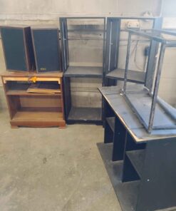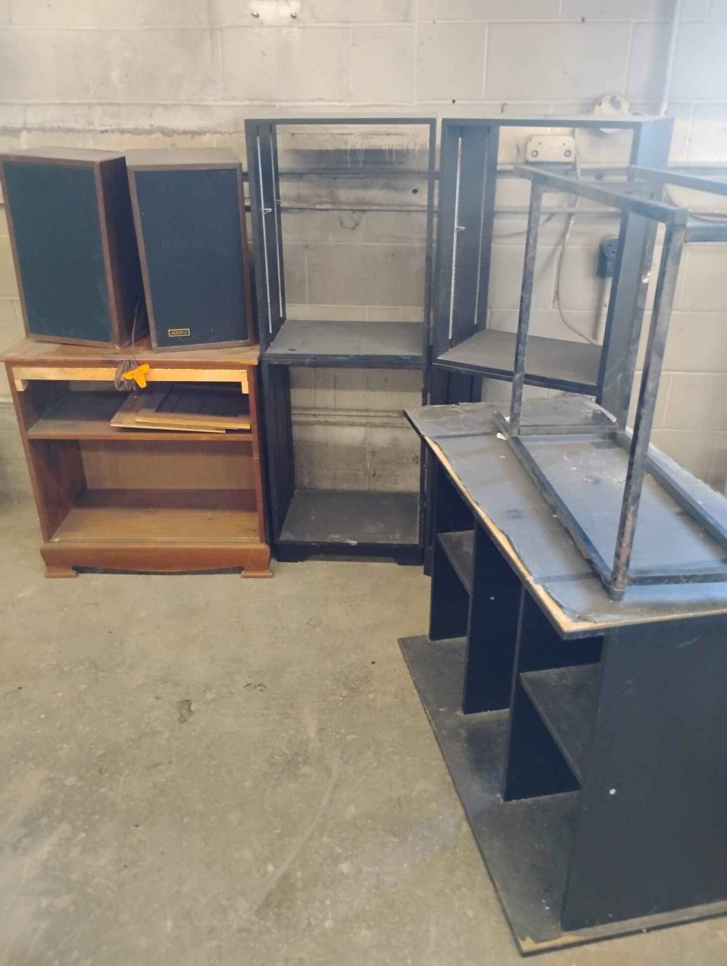 Assorted storage units/shelves…and speakers