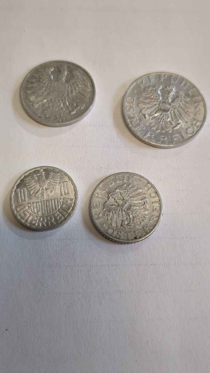 1 Schilling, 2 Schilling, 10 groschen & 50 groschen.