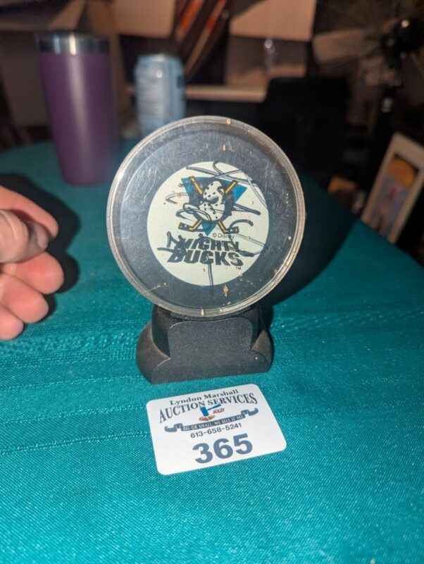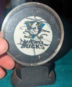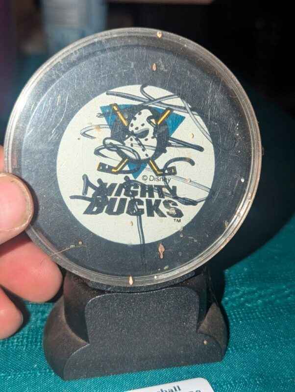 Leo Boivin Autographed Anaheim Mighty Ducks hockey puck