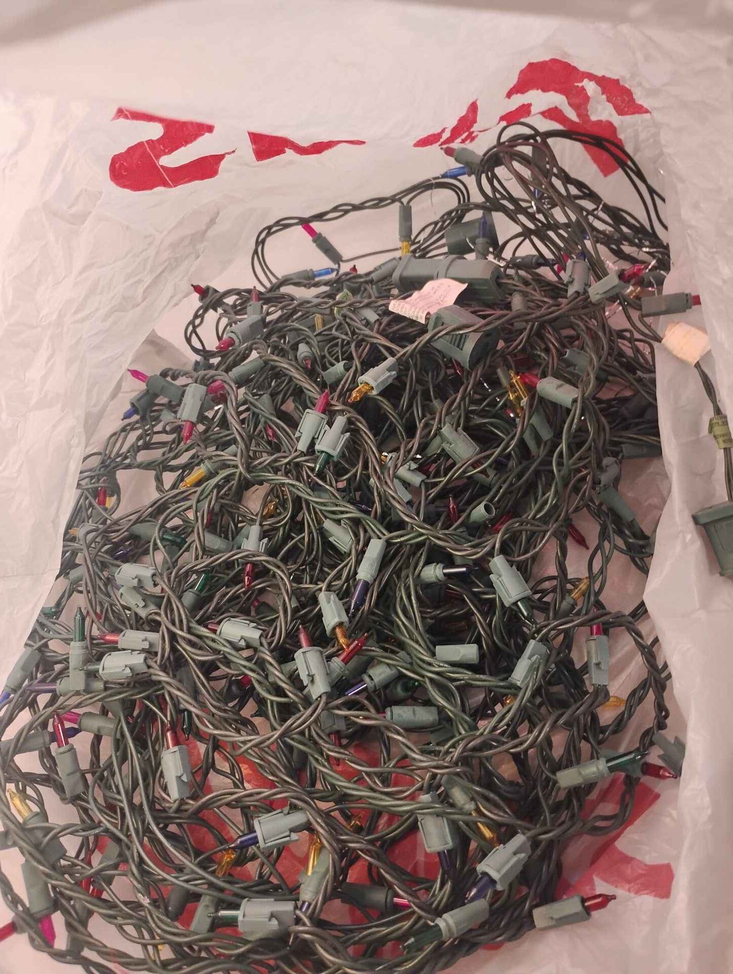 Bag full of Christmas lights