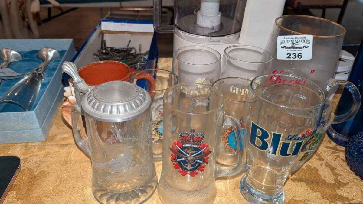 Bar glasses, steins