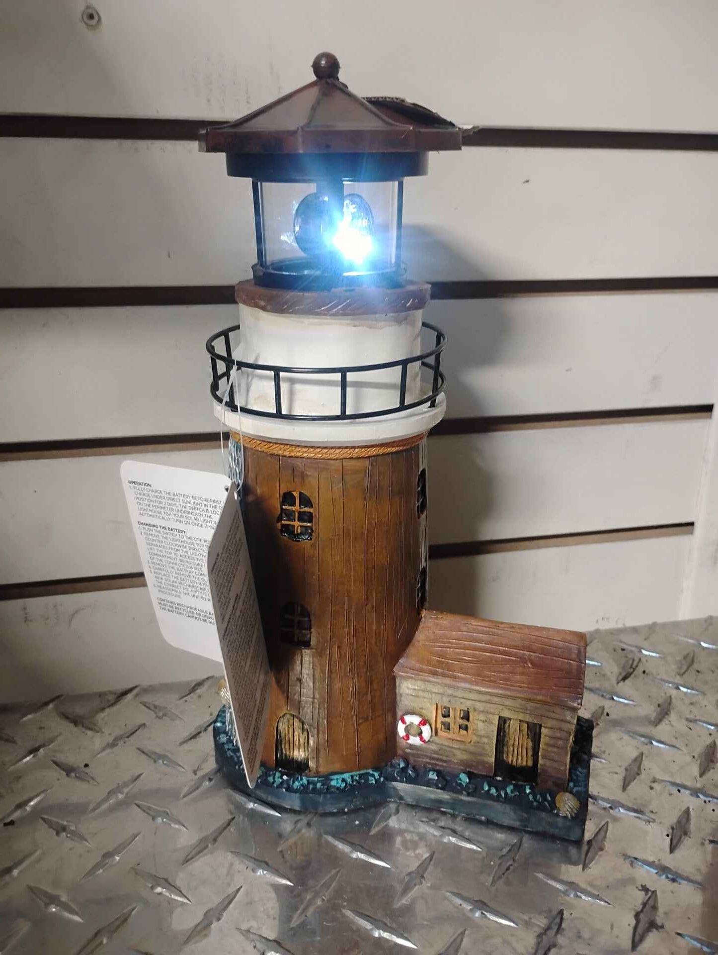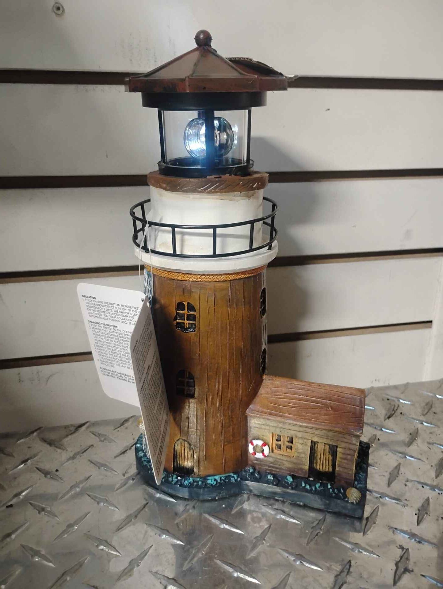 Beautiful SOLAR POWERED Brown lighthouse with rotating LED beacon