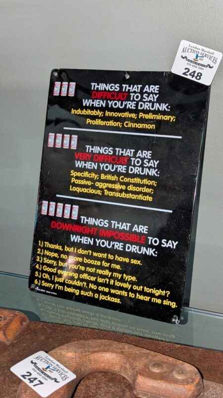 8. ANNOUNCEMENTS DAY OF SALE TAKE PRECEDENCE OVER ALL PREVIOUSLY PRINTED MATTER. AUCTION HOUSE RESERVES THE RIGHT TO REMOVE/ADD ITEMS OR LOTS AT ANY POINT DURING THE AUCTION. EQUALLY, THE AUCTION HOUSE RESERVES THE RIGHT TO ACCEPT/REFUSE A BID ON ANY LOT BY ANYONE WHO BEHAVES IN A MANOR THAT IS OFFENSIVE, THREATENING OR OF MALICIOUS INTENT.