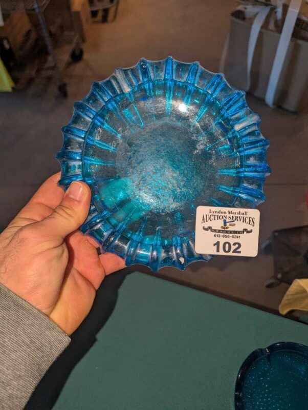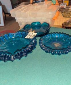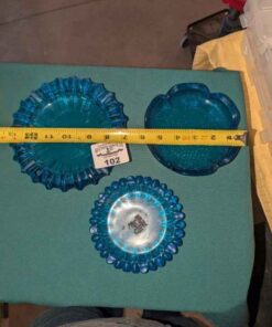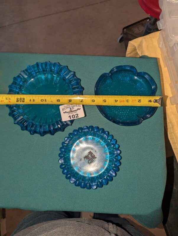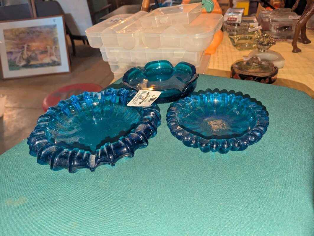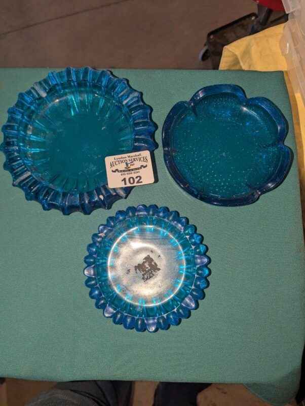 Blue Glass Ash Tray Trio