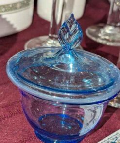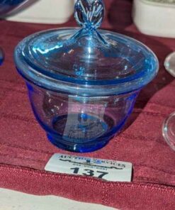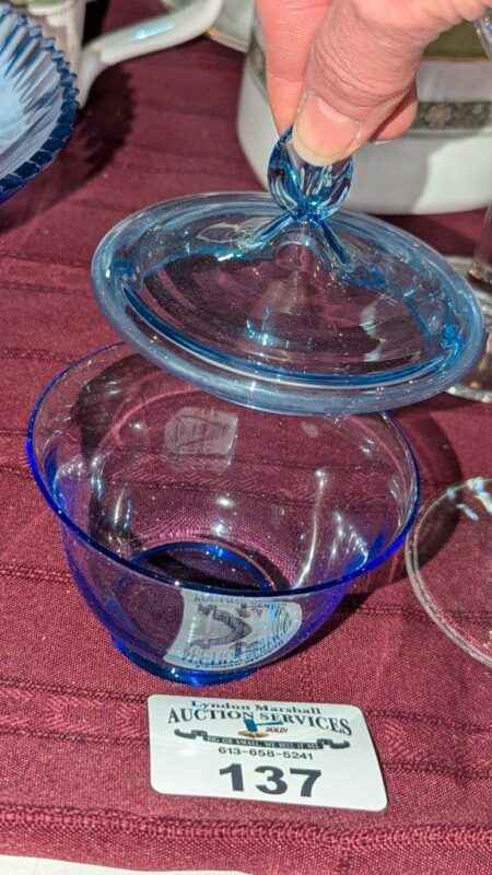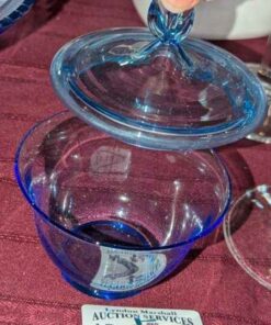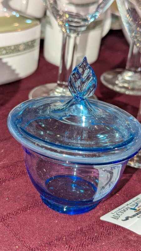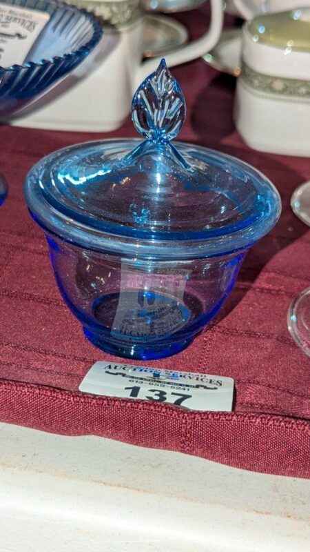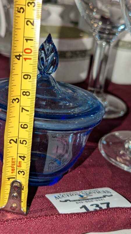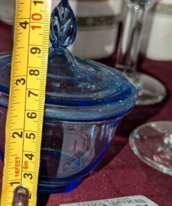 Blue glass covered candy dish