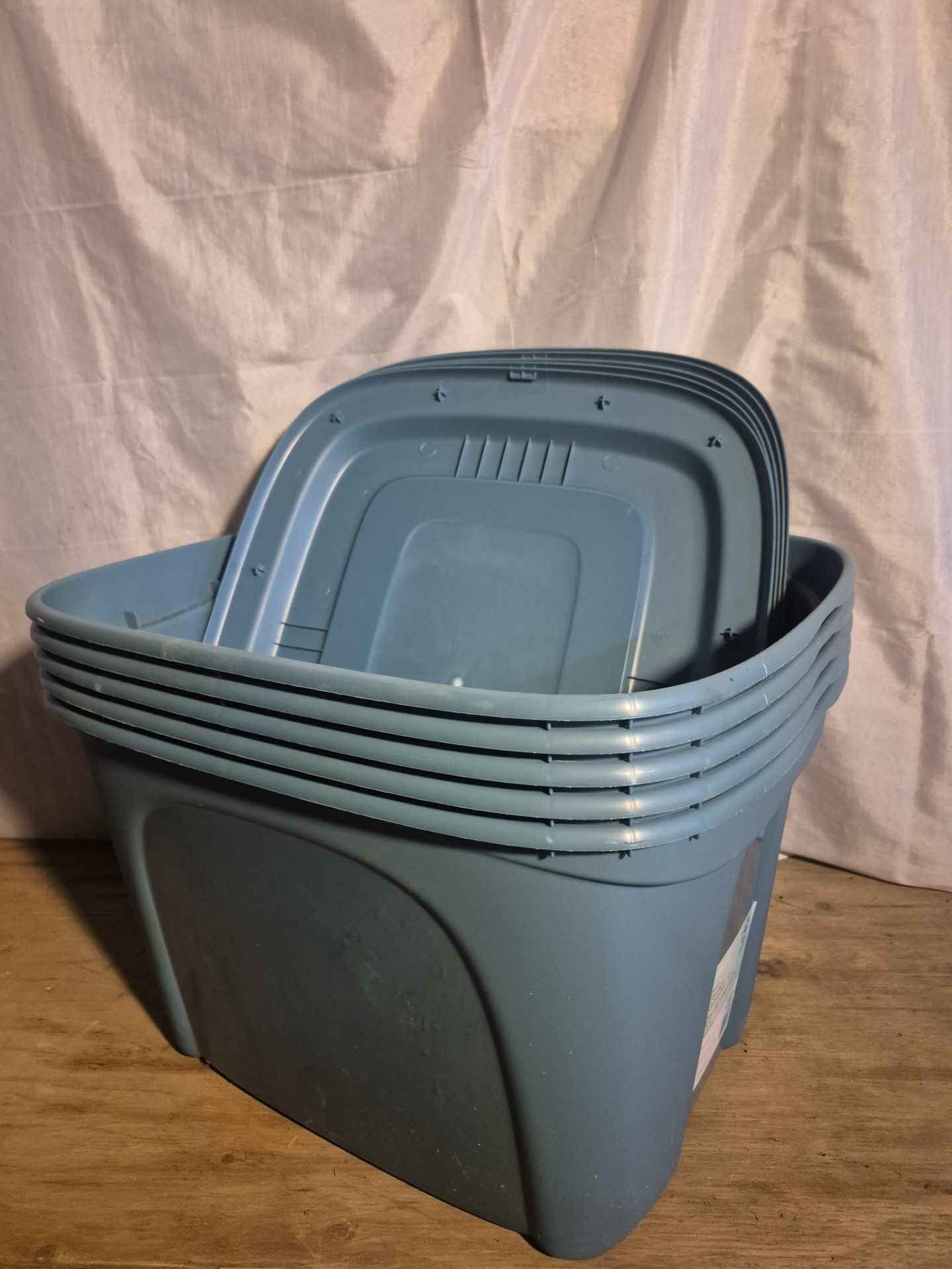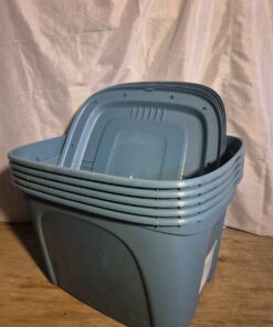 Blue storage tote with lid
