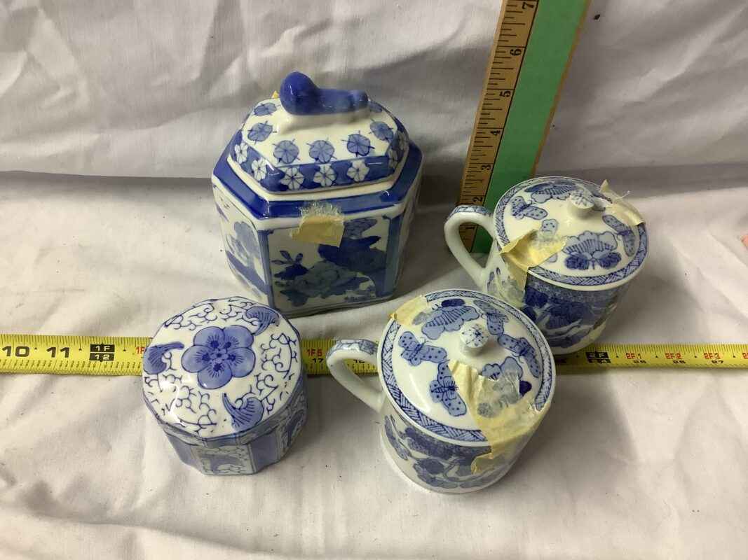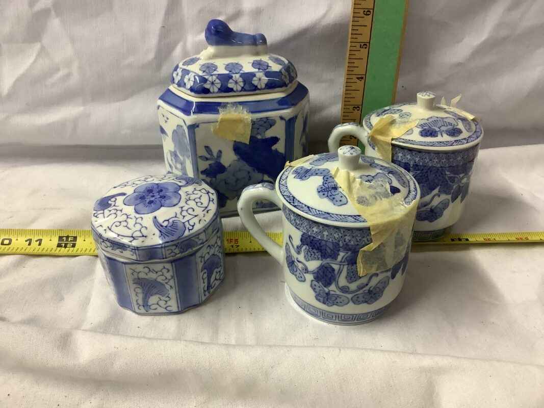 Blue & White Covered Dishes (4)