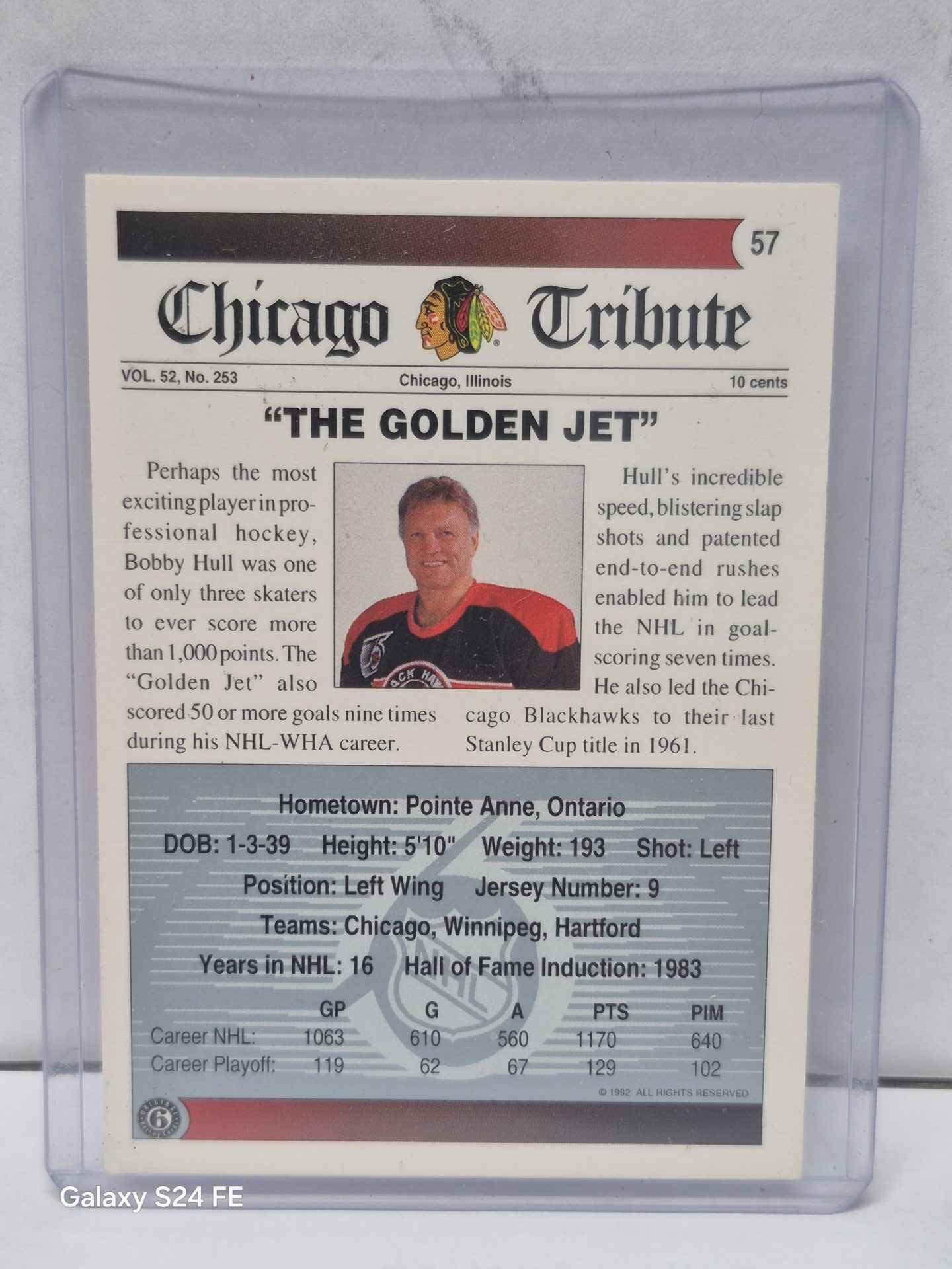 Bobby Hull chicago tribute collectible card