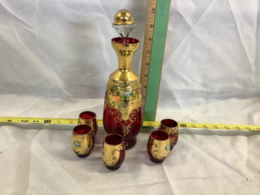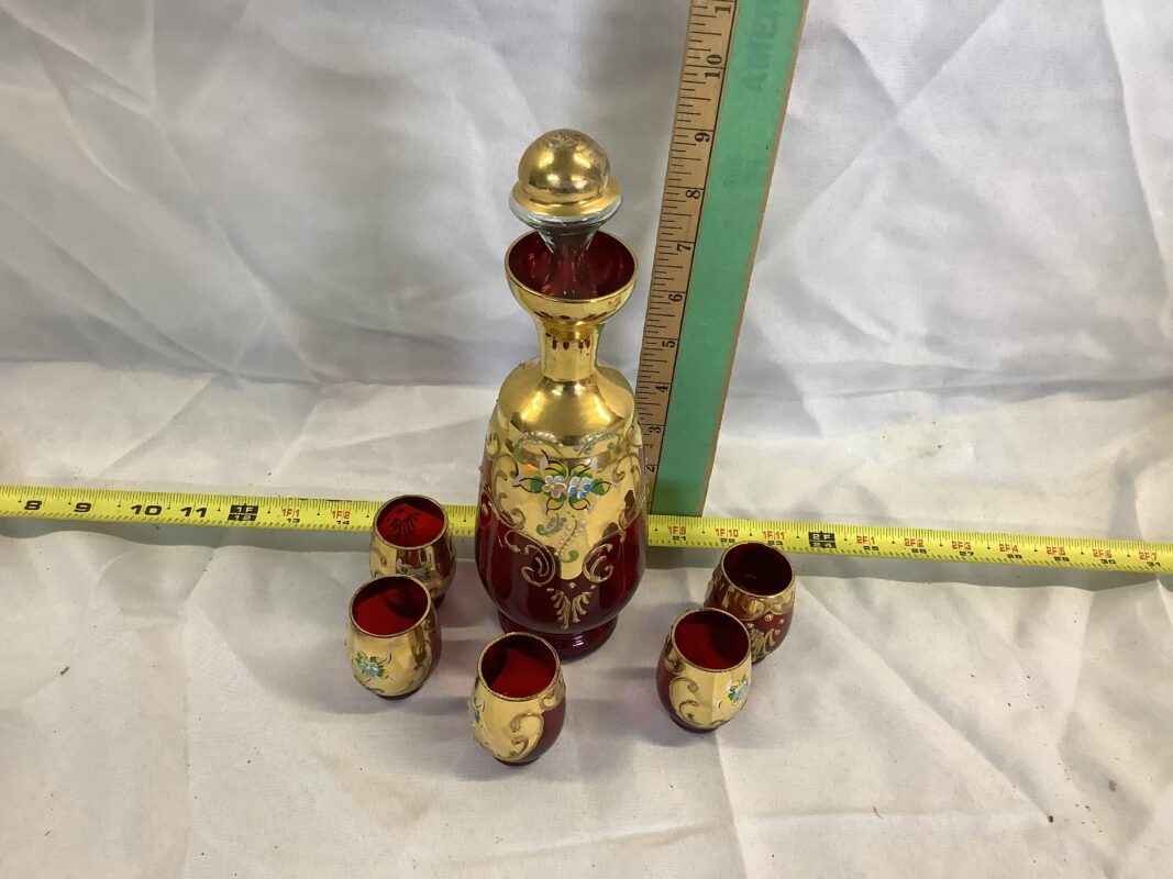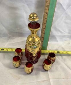 Bohemian Glass Decanter with 5 glasses