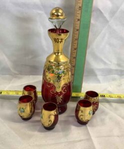 Bohemian Glass Decanter with 5 glasses