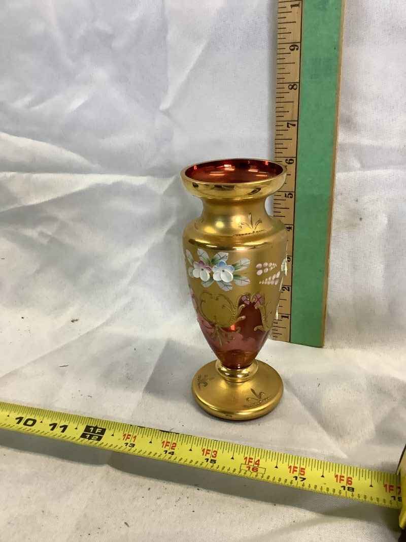 Bohemian Glass Vase 6”h