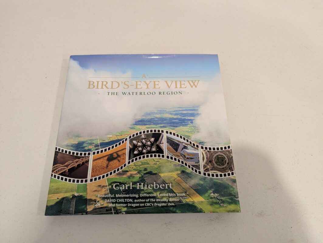 Book -“A Bird’s-eye View” ” The Waterloo Region” by Carl Hiebert an awesome array of low-level photos taken from the seat of his ultralight as he flew around Waterloo Region