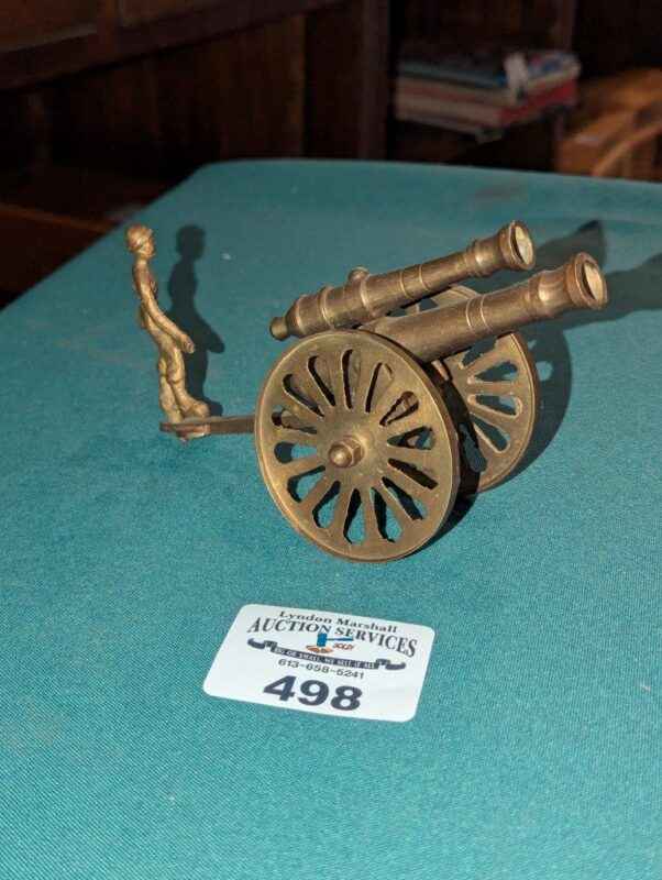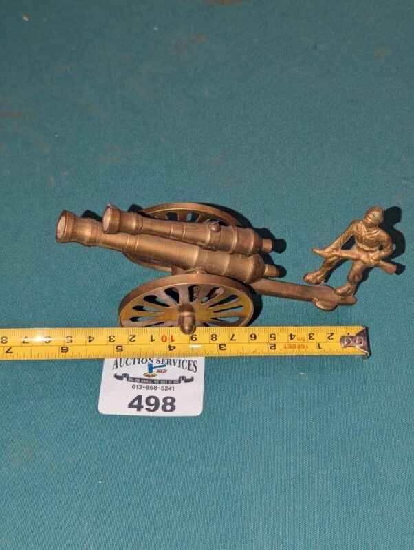 Brass Double barrel canon with soldier