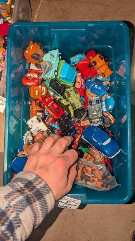 ‘Cars’ character & assorted model cars in plastic storage box