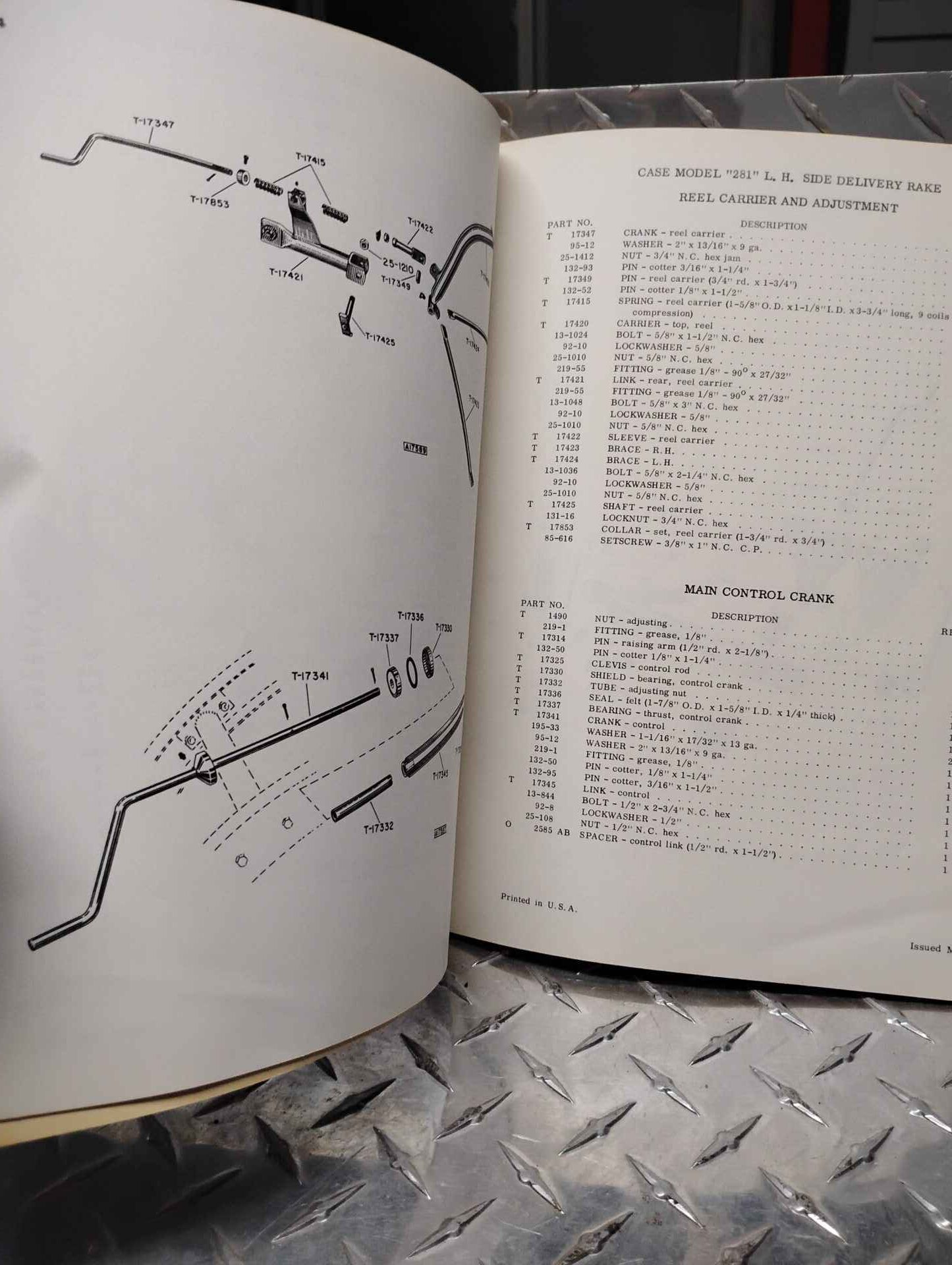 Case 261 and 262 side rake parts manual