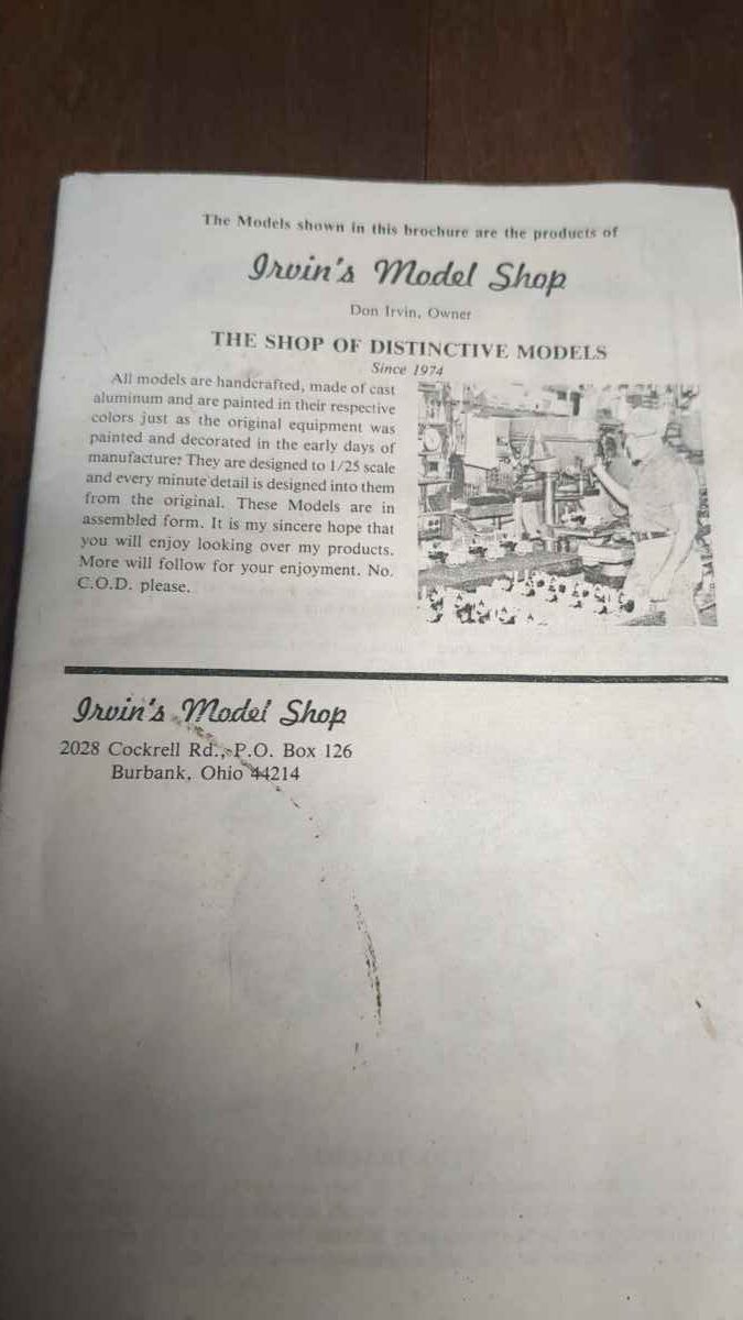 From Irwin’s Model Shop, Ohio