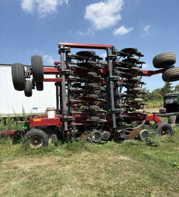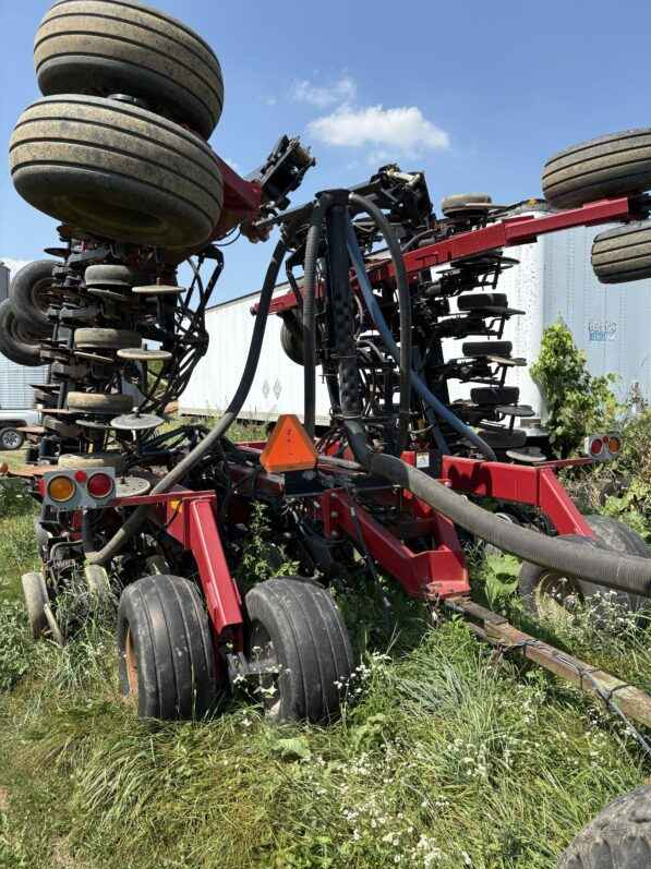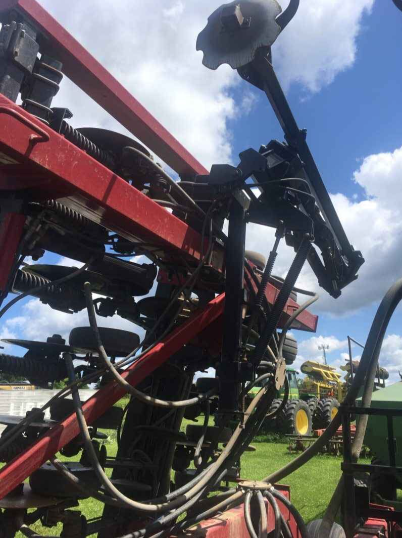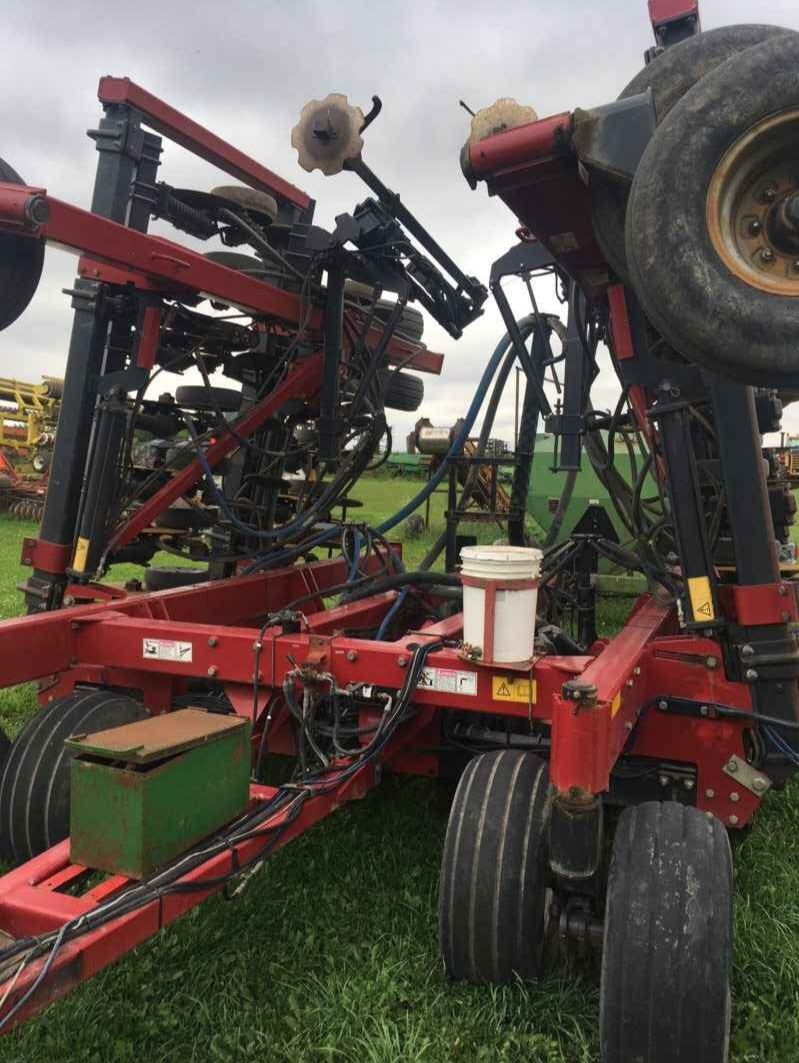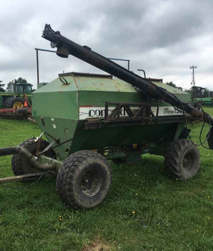 Case 30 foot Air Drill, 7.5″ row spacing, includes marker arms. Half of the opening disc have 1 season of wear, other half has 2 seasons on them. Some newer hoses. Overall, Drill is in very good shape and easy to operate. Comes with Concord 1502 Seed cart. Cart was functional last time we used it but may need some work. We replaced diesel engine on the cart with a gas powered one to run air system. If your tractor has the hydraulic capabilities you could likely put a hydraulic drive on the fan.
