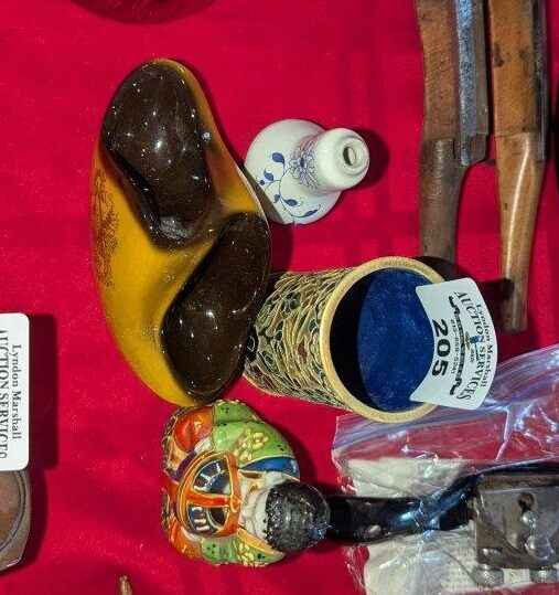 Ceramic incense burner, enamel and assorted vases