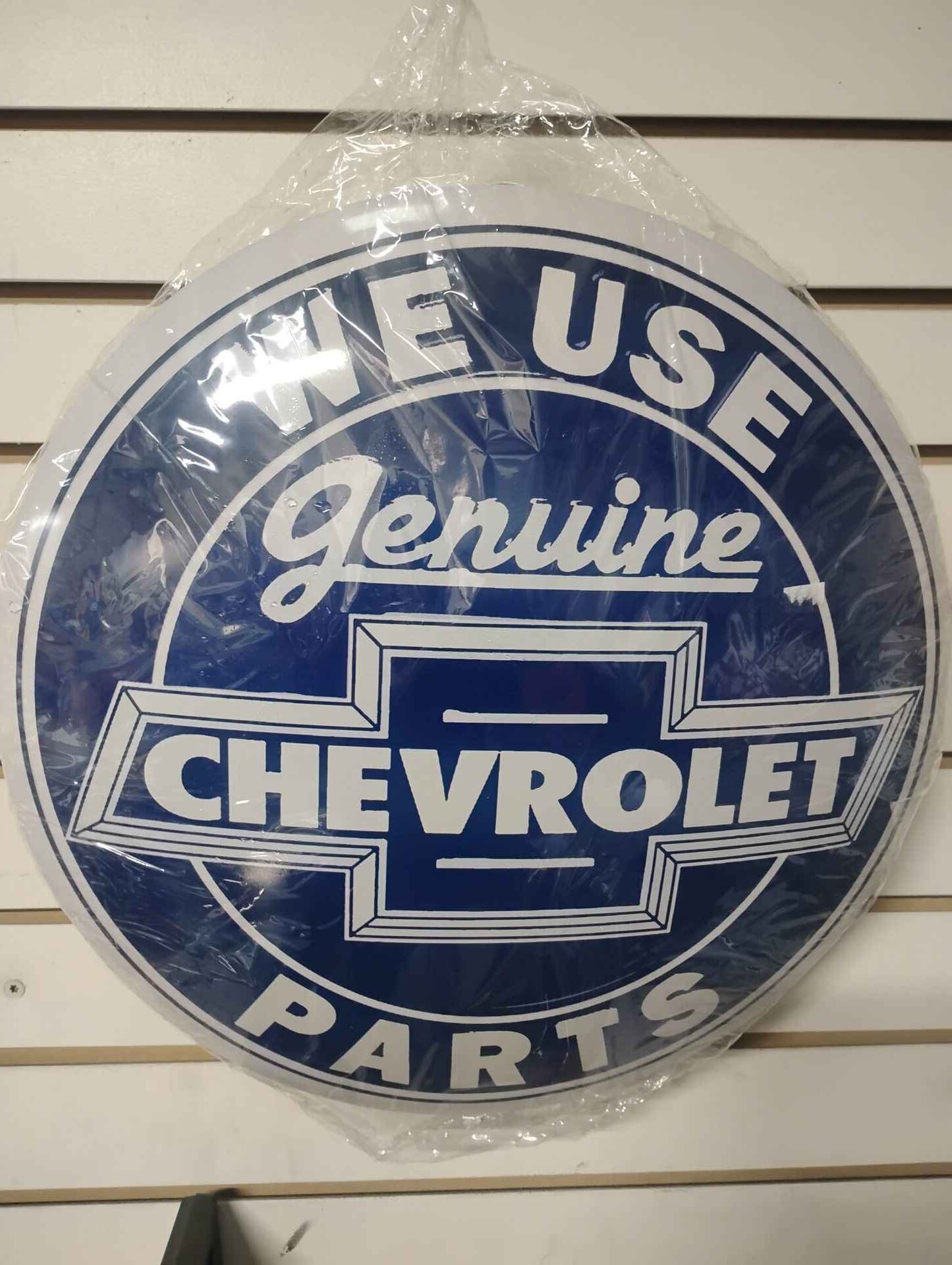 Chevrolet genuine parts 16-in round hubcap style metal sign
