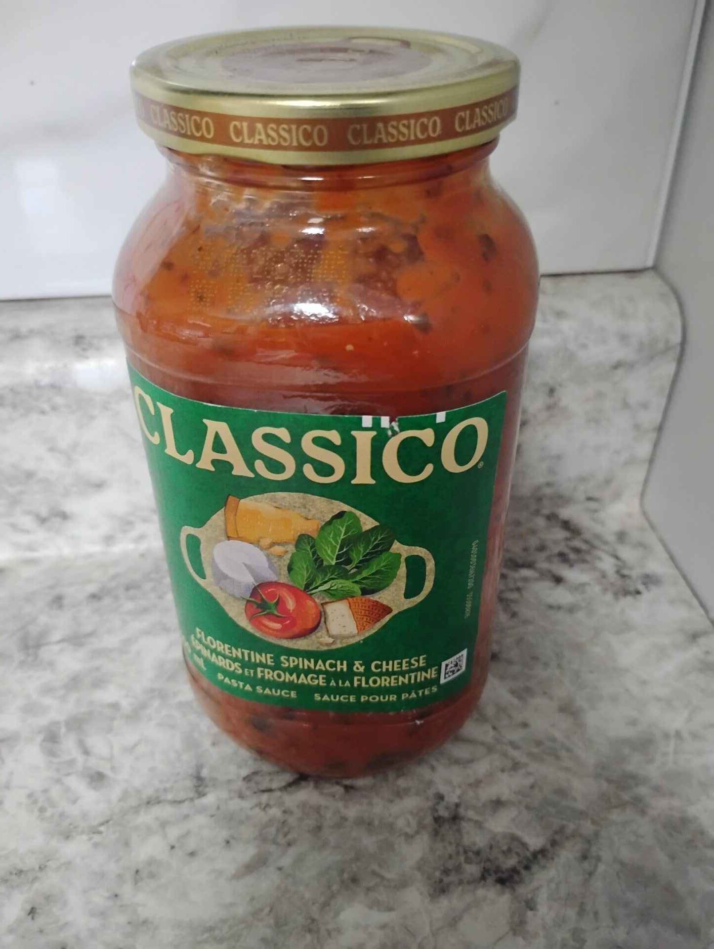 Classico Florentine spinach and cheese pasta sauce…date is current