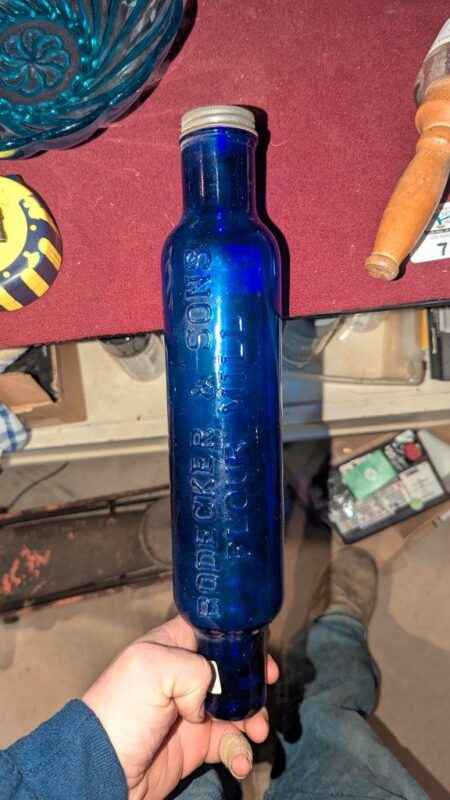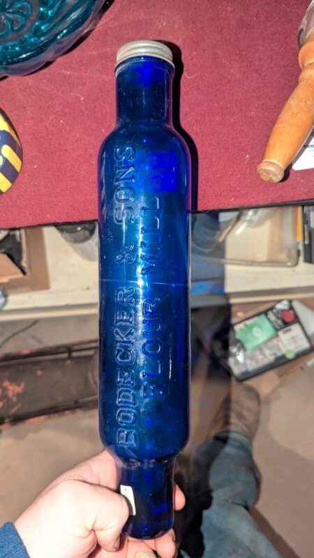 Cobalt blue “Bodecker & Sons Flour Mill” Advertising rolling pin