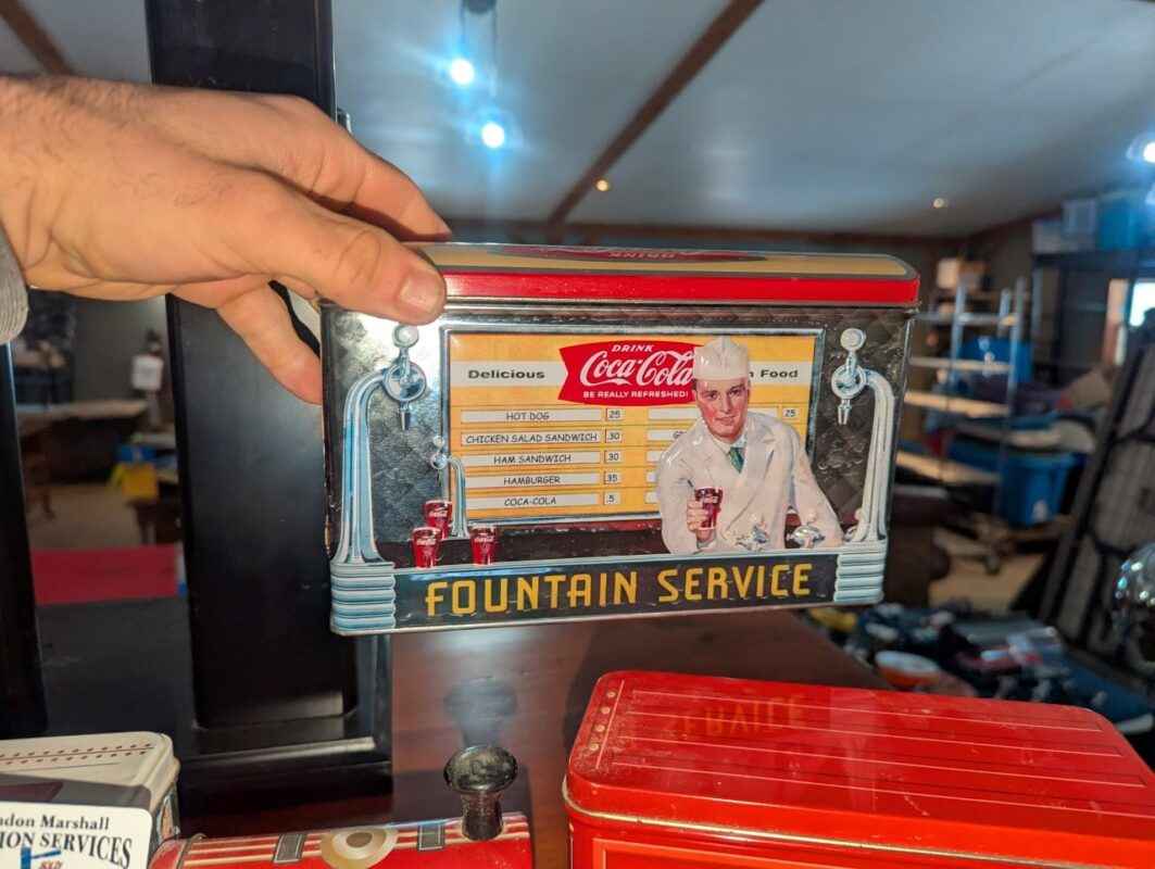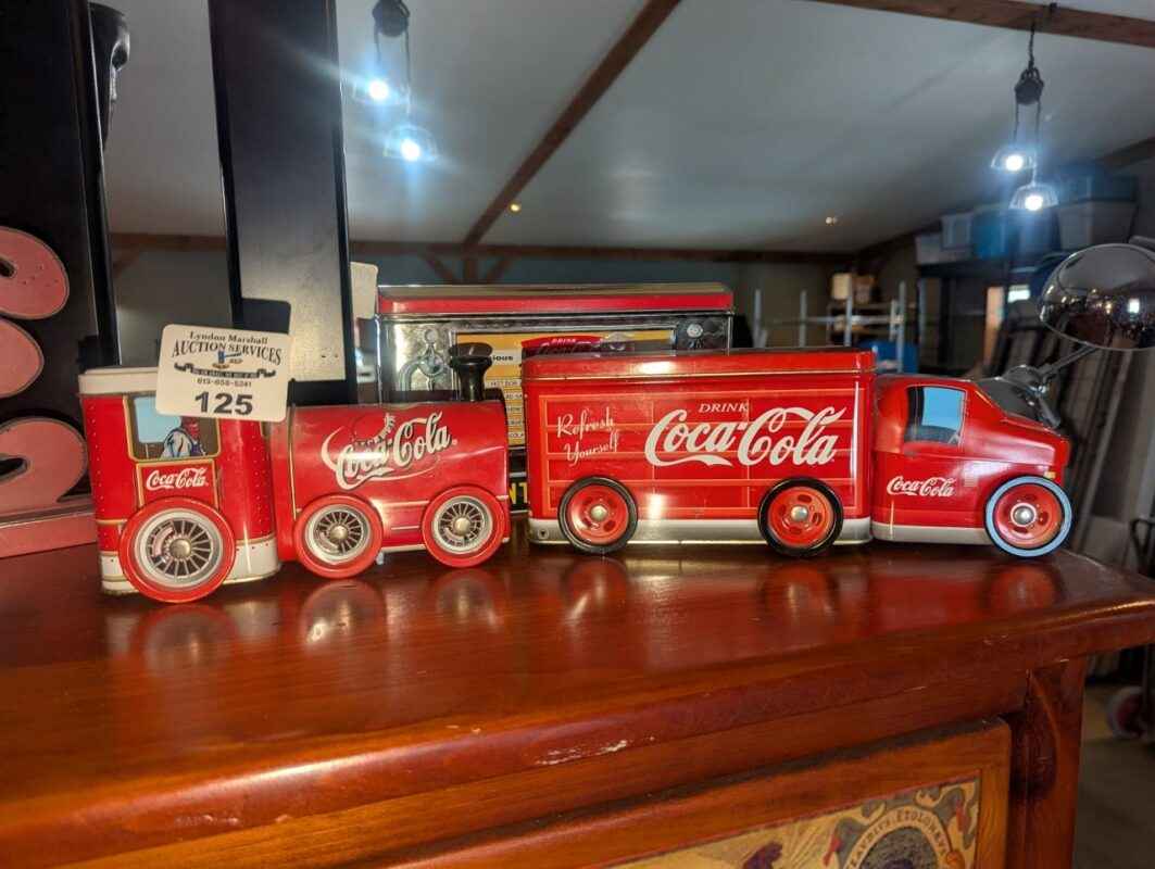 Coca-cola tin train and fountain box