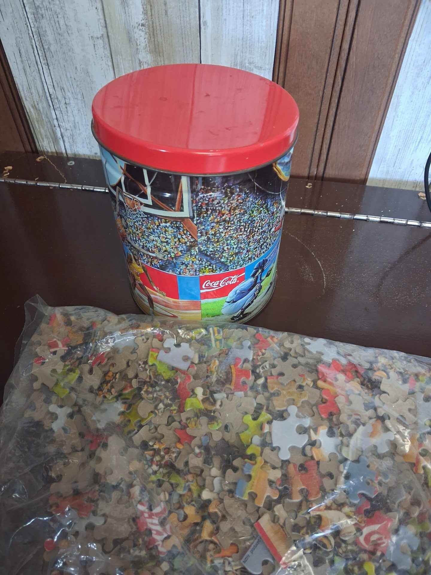 Cocoa cola puzzle with collector tin package is still sealed but has a small hole