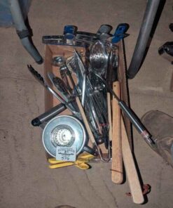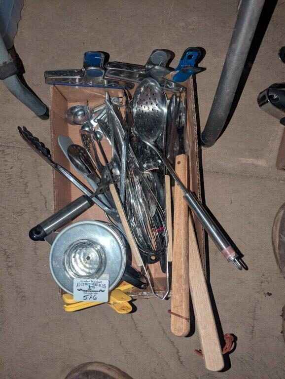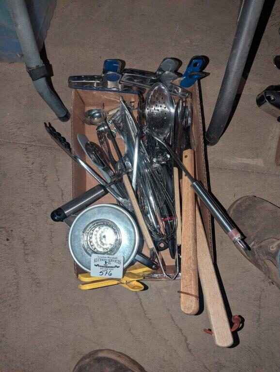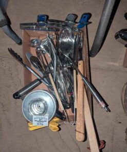 Coffee percolator, BBQ tongs, Kitchen utensils