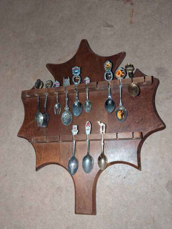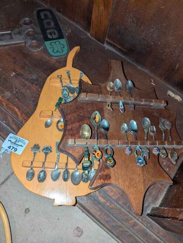 Collector spoons, Leaf and pear shaped display boards