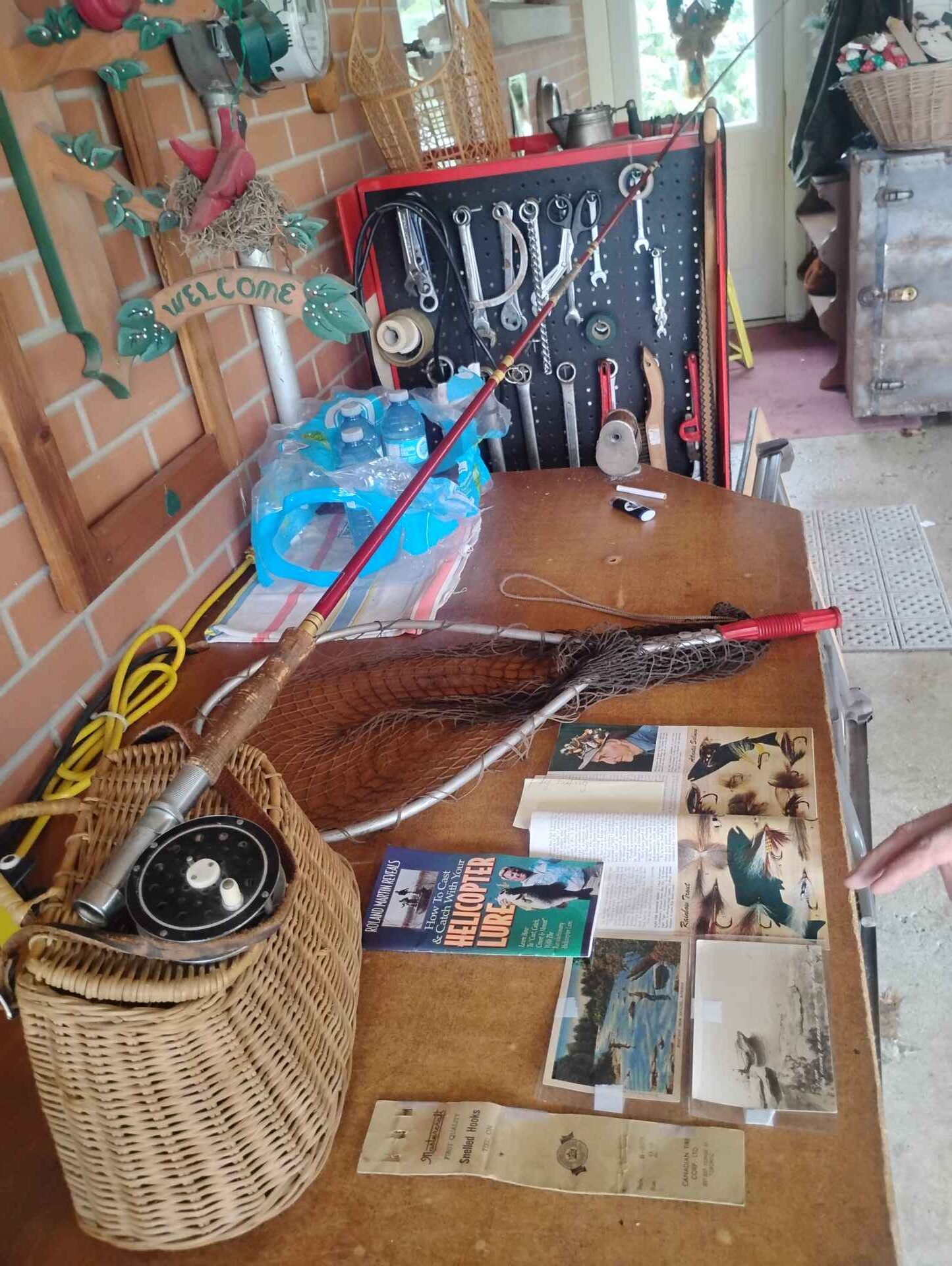 Complete vintage fly-fishing kit…. including rod and reel net books weave fly basket and more…..all non fishing items in pictures not included