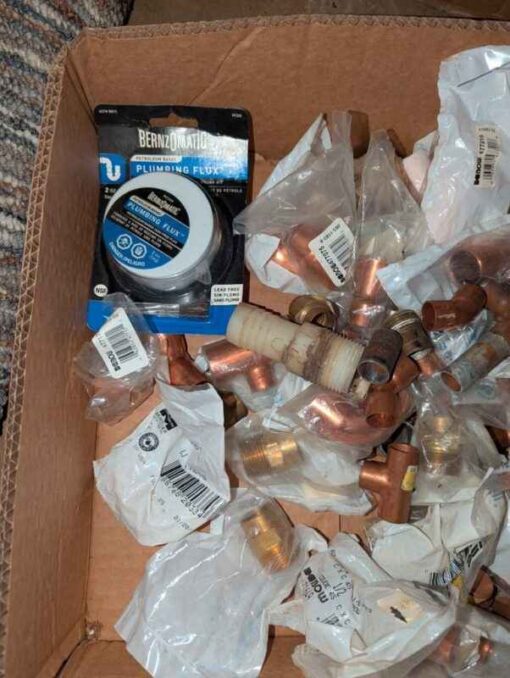 Copper and brass fittings, plumbing flux, etc