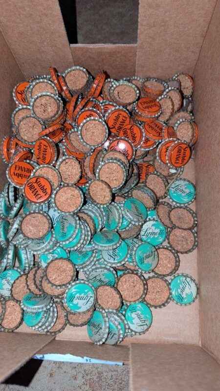Cork lined Stubby Orange and Lymette bottle caps